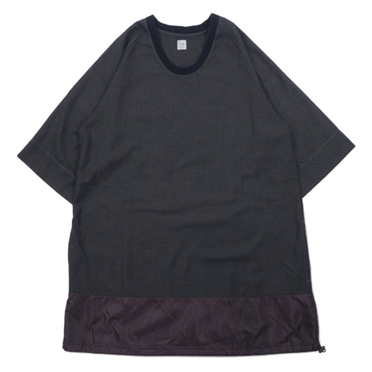 RYU Poncho Shirt Drawstring T-Shirt FREE Grey Polyester Rayon Different Material Switching Made in Japan