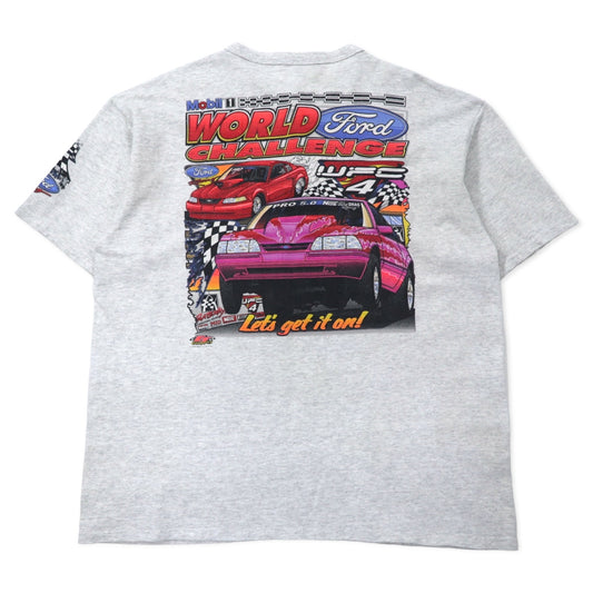 Made in USA 00s COTTON DELUX Racing Car Print Henley T-Shirt 2X Grey Cotton Ford Racing Big Size