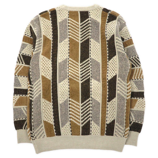 IL DANTE Big Size 3D Knit Sweater S Brown Wool All Over Pattern 90's Made in Australia