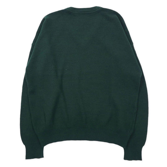 CHEMISE LACOSTE Made in France 80's French Lacoste V-neck Acrylic Knit Sweater 4 Green Wool One Point Logo Big Size