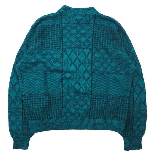 McGREGOR 80's Bottle Neck Low Gauge Knit Sweater L Green Acrylic All Over Pattern Crazy Pattern