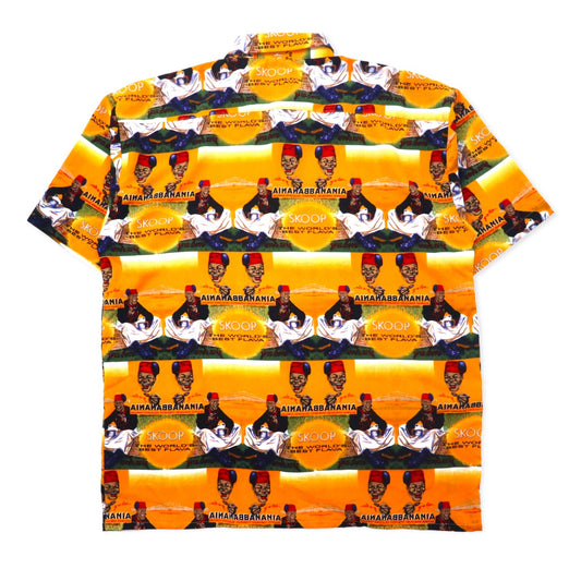 90s SKOOPS WORLDWIDE all-over print graphic shirt Aloha shirt XXL Yellow Polyester Big size