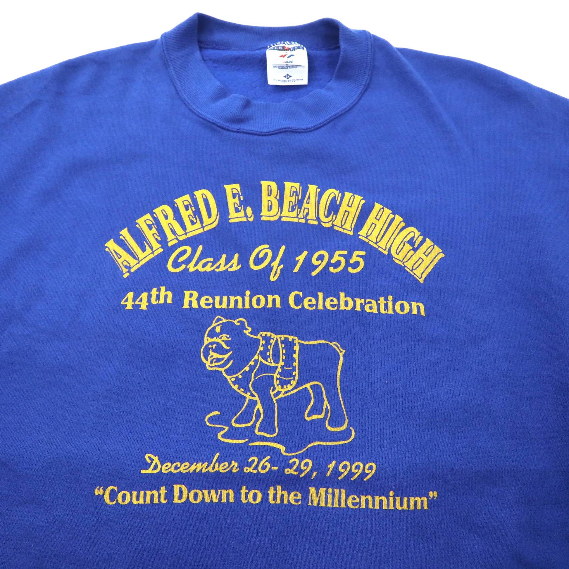 Made in USA JERZEES Big Size College Print Sweatshirt 2X Blue Cotton Brushed Back ALFRED E. BEACH HIGH 90's