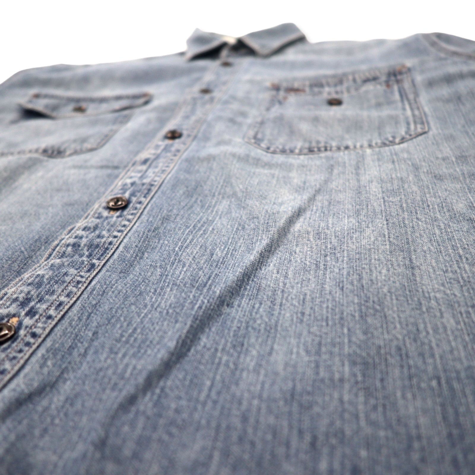POLO JEANS CO. RALPH LAUREN 90s denim work shirt L blue cotton cat eye button big size