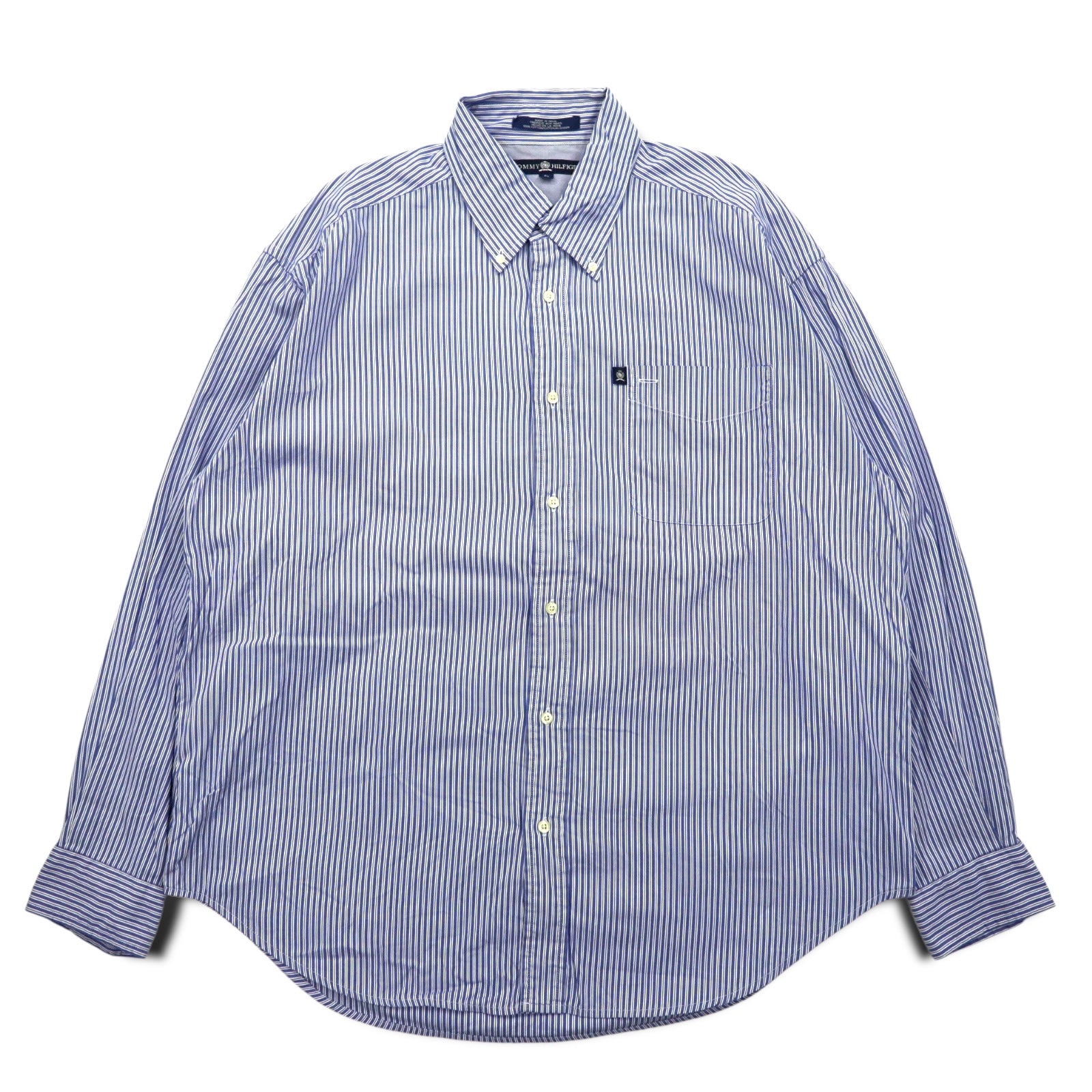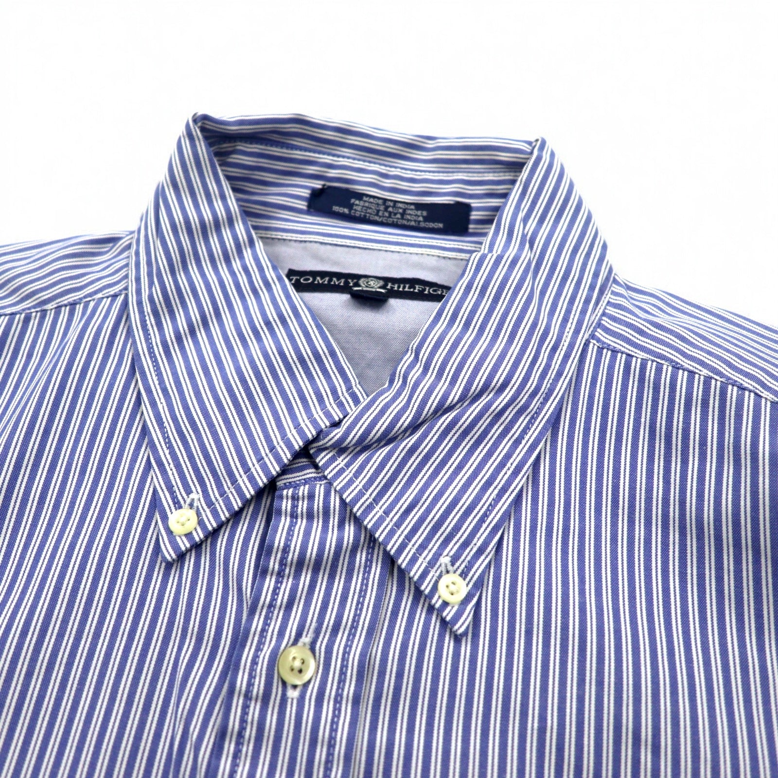 TOMMY HILFIGER 90s Big Size Button Down Shirt L Blue Striped Cotton