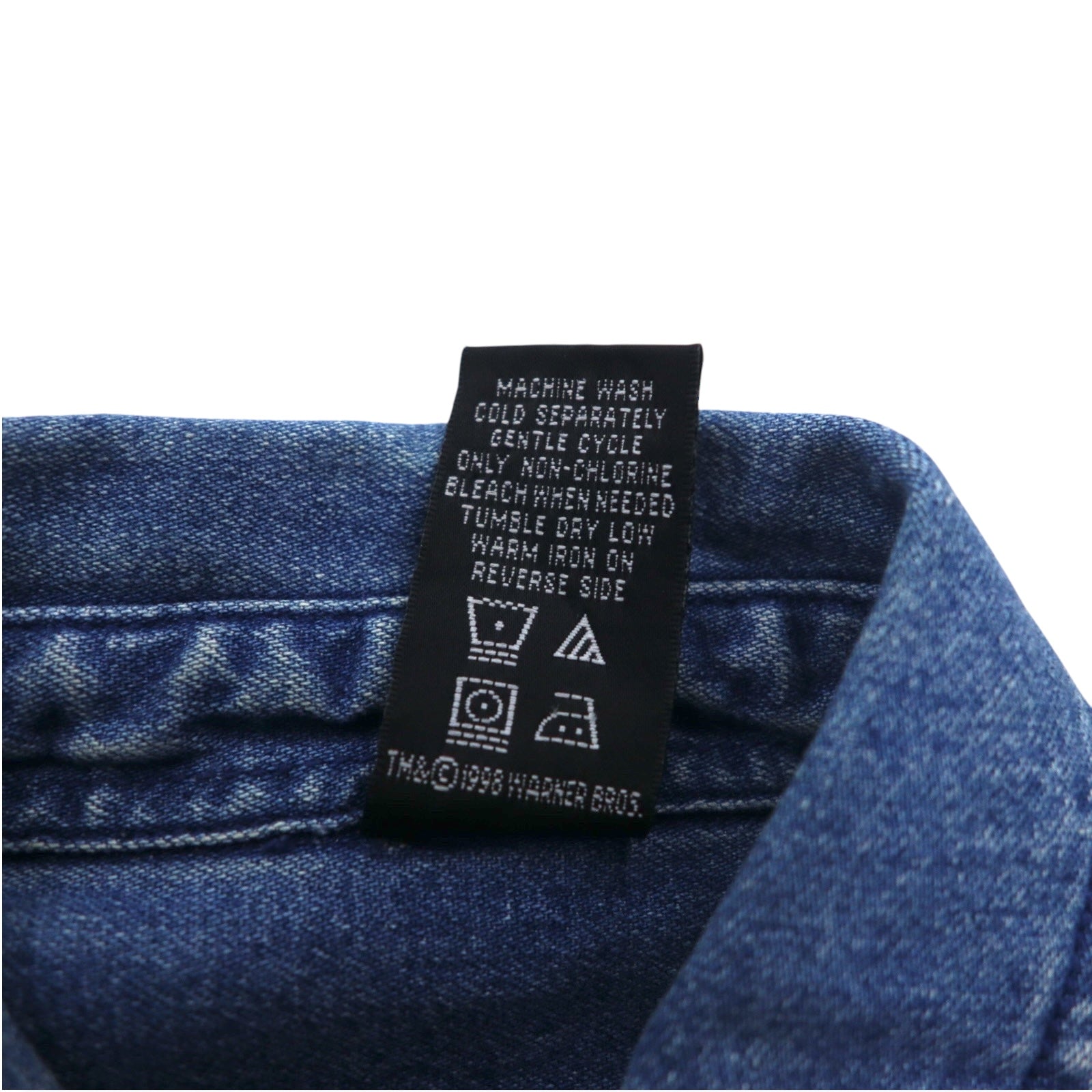WARNER BROS. 90s Big Size Denim Button Down Shirt S Blue LOONEY TUNES Character Embroidery