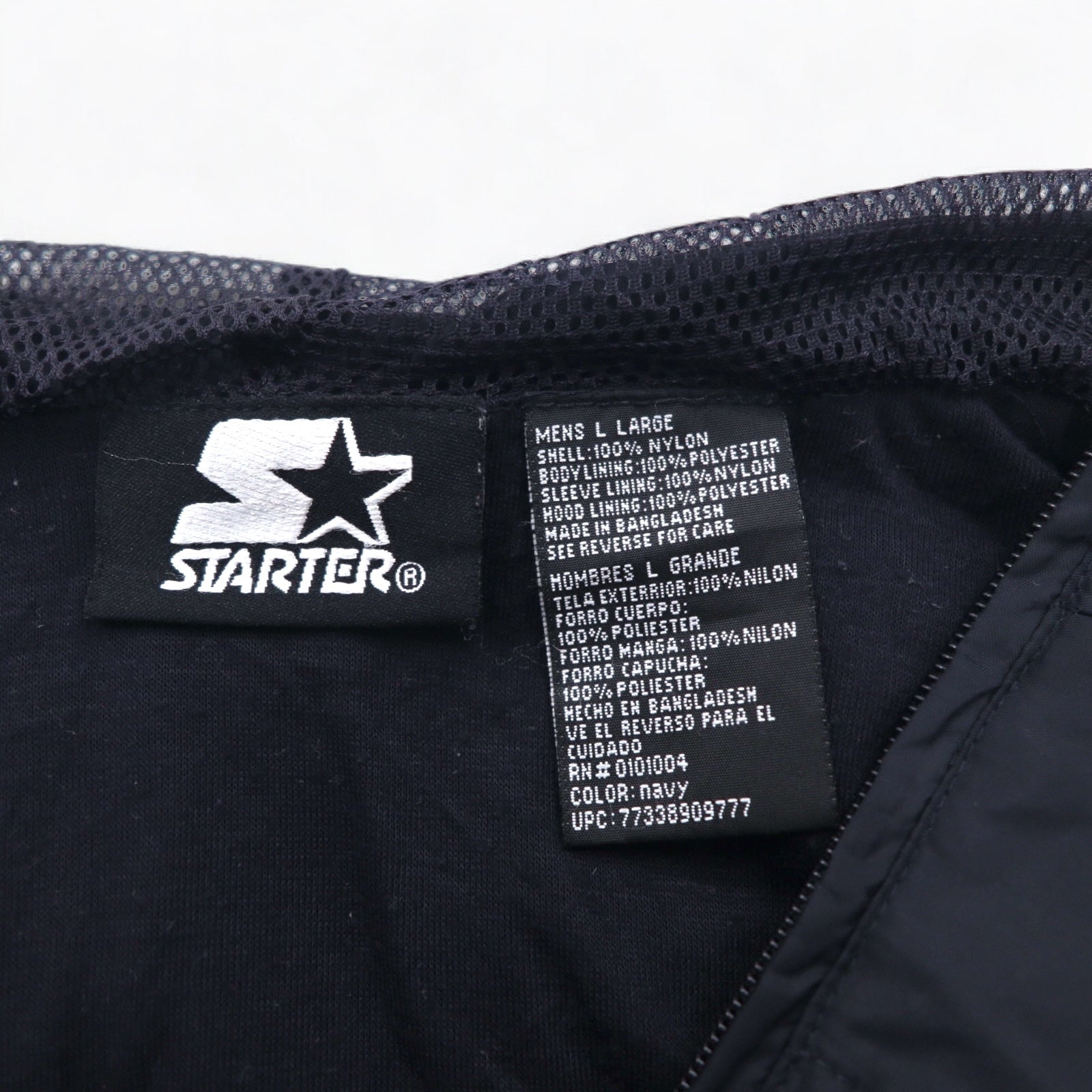 STARTER Layered Anorak Parka Half Zip Nylon Jacket L Black One Point Logo Embroidery