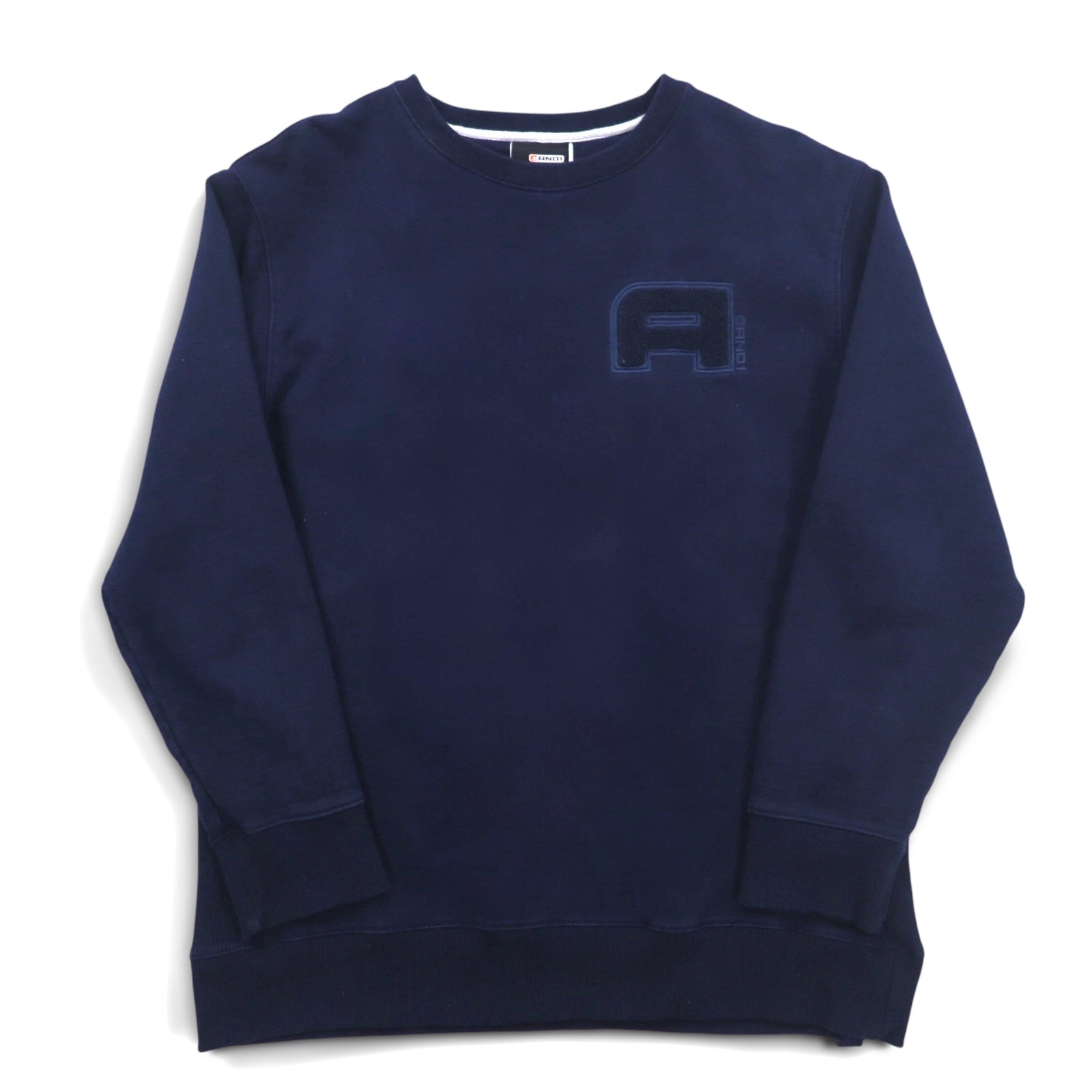 AND1 Reverse Weave Sweatshirt, XL, Navy, Cotton, Logo Embroidery