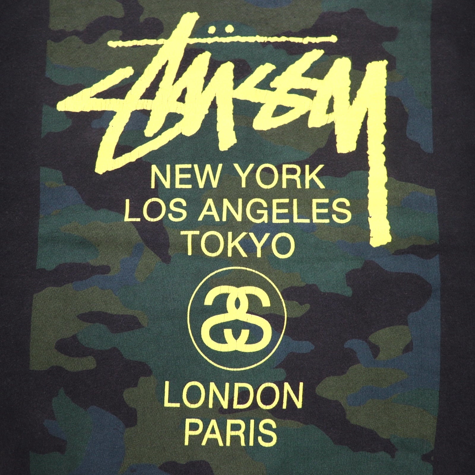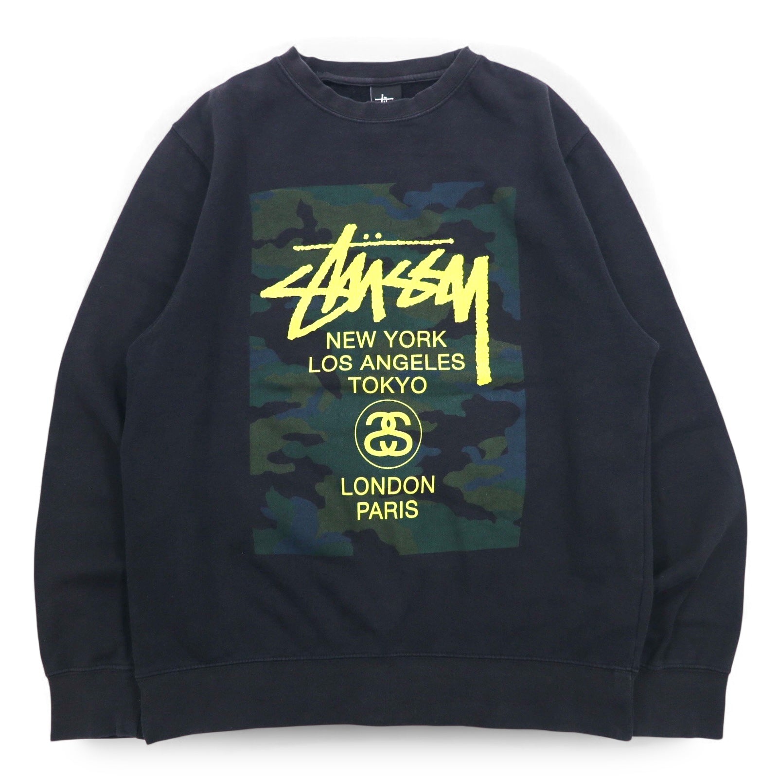 STUSSY USA Made World Tour Crew Neck Sweatshirt L Black Camo WT Camo Block Sweat