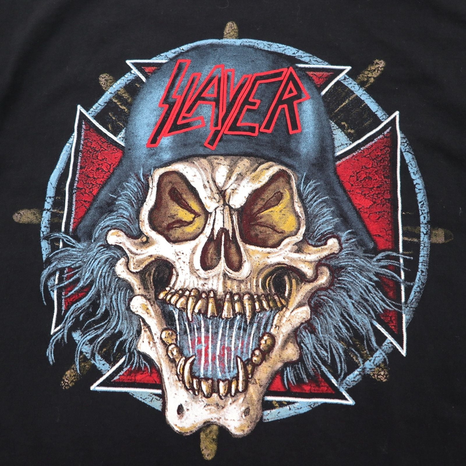 SLAYER Band T-Shirt L Black Cotton Double-sided Print Skull FRUIT OF THE LOOM Made in Morocco