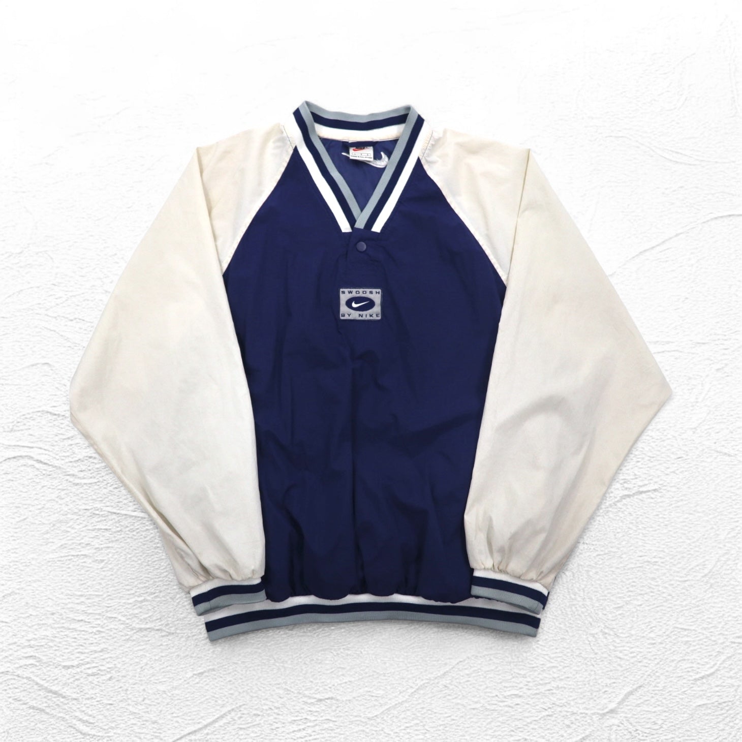 NIKE 90s Silver Tag Ribline Piste Pullover Nylon Jacket L Navy Swoosh
