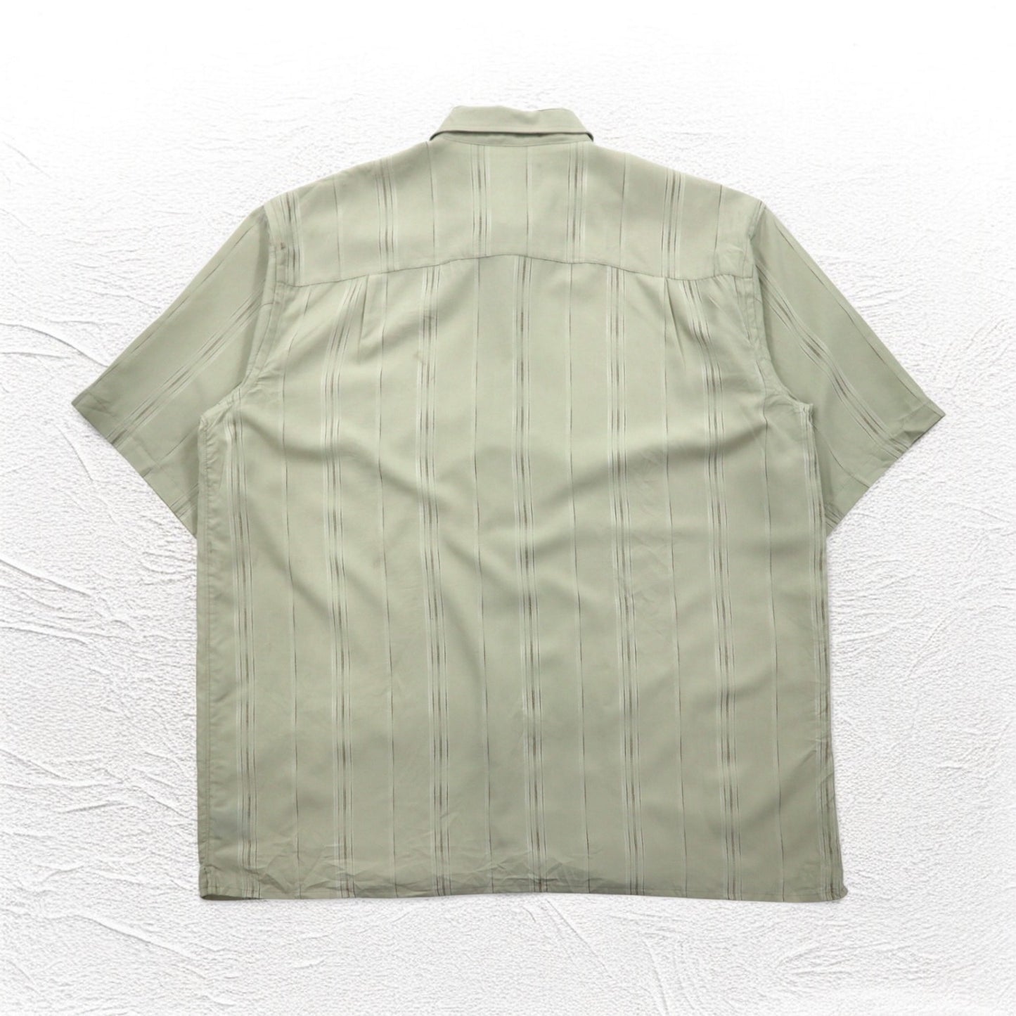 TOWN CRAFT 90s Short Sleeve Shirt 2XL Beige Striped Polyester Chest Pocket