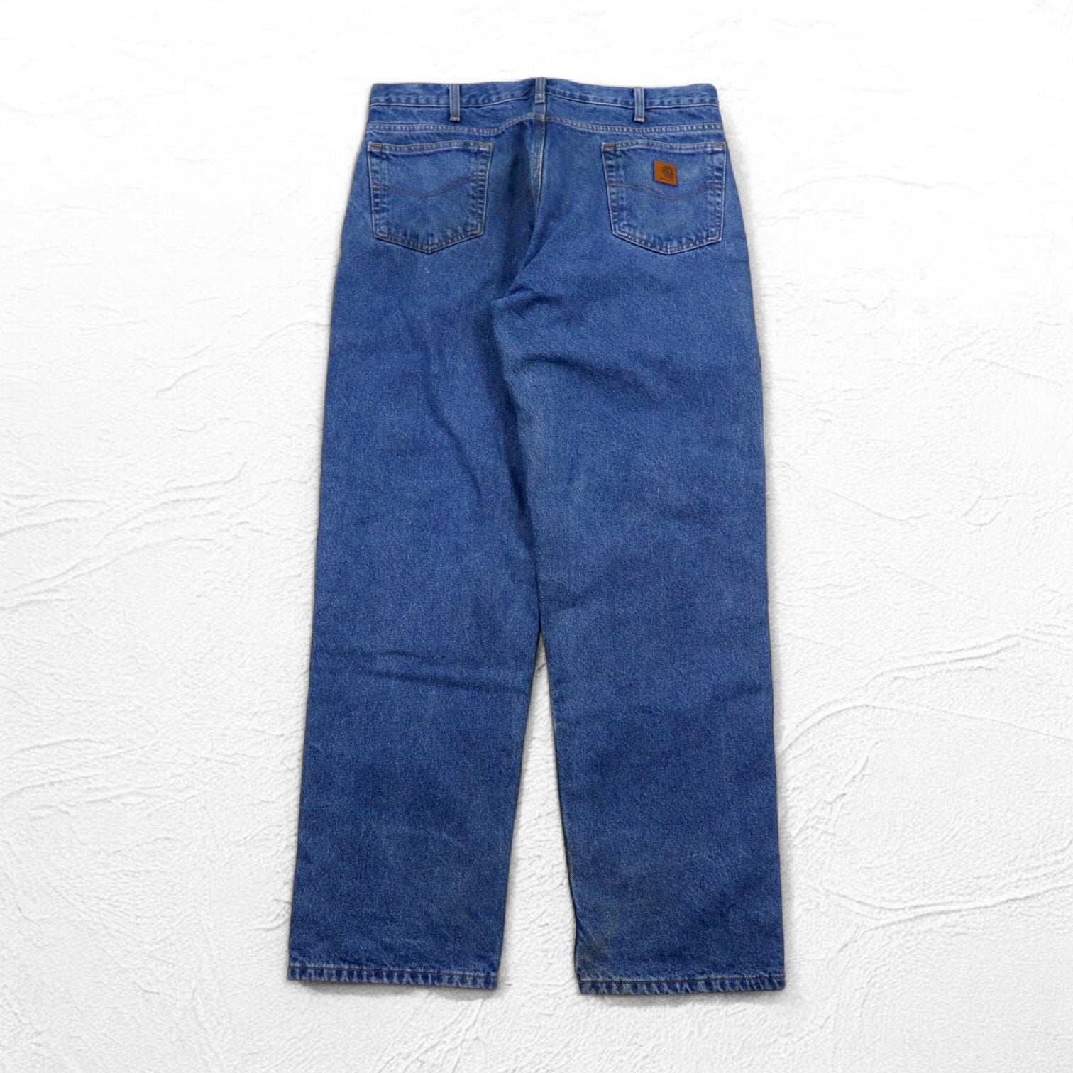 Carhartt Relaxed Fit Flannel Liner Denim Pants XL Indigo Blue Check Lining B172 DST Made in Mexico