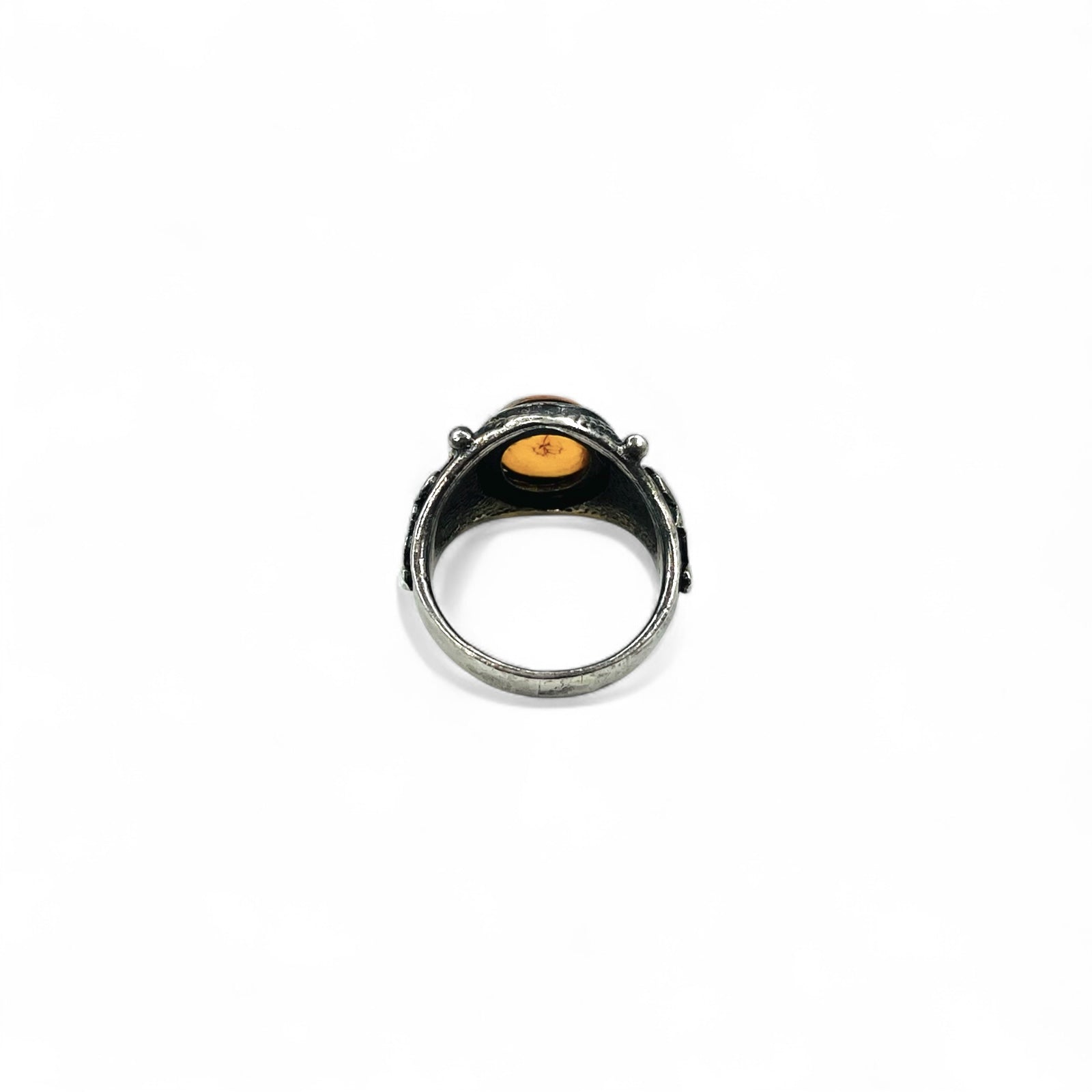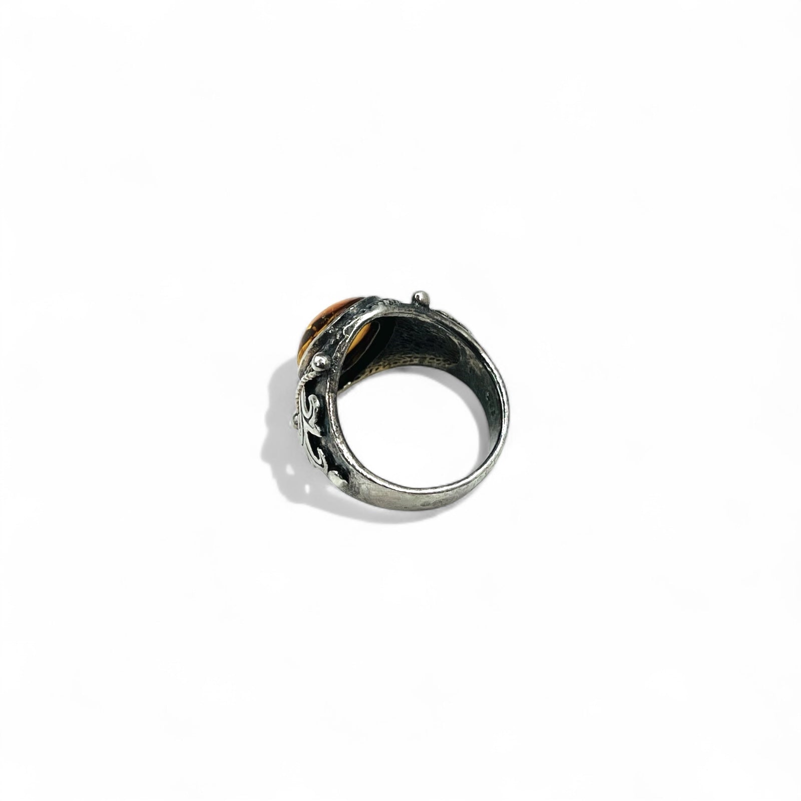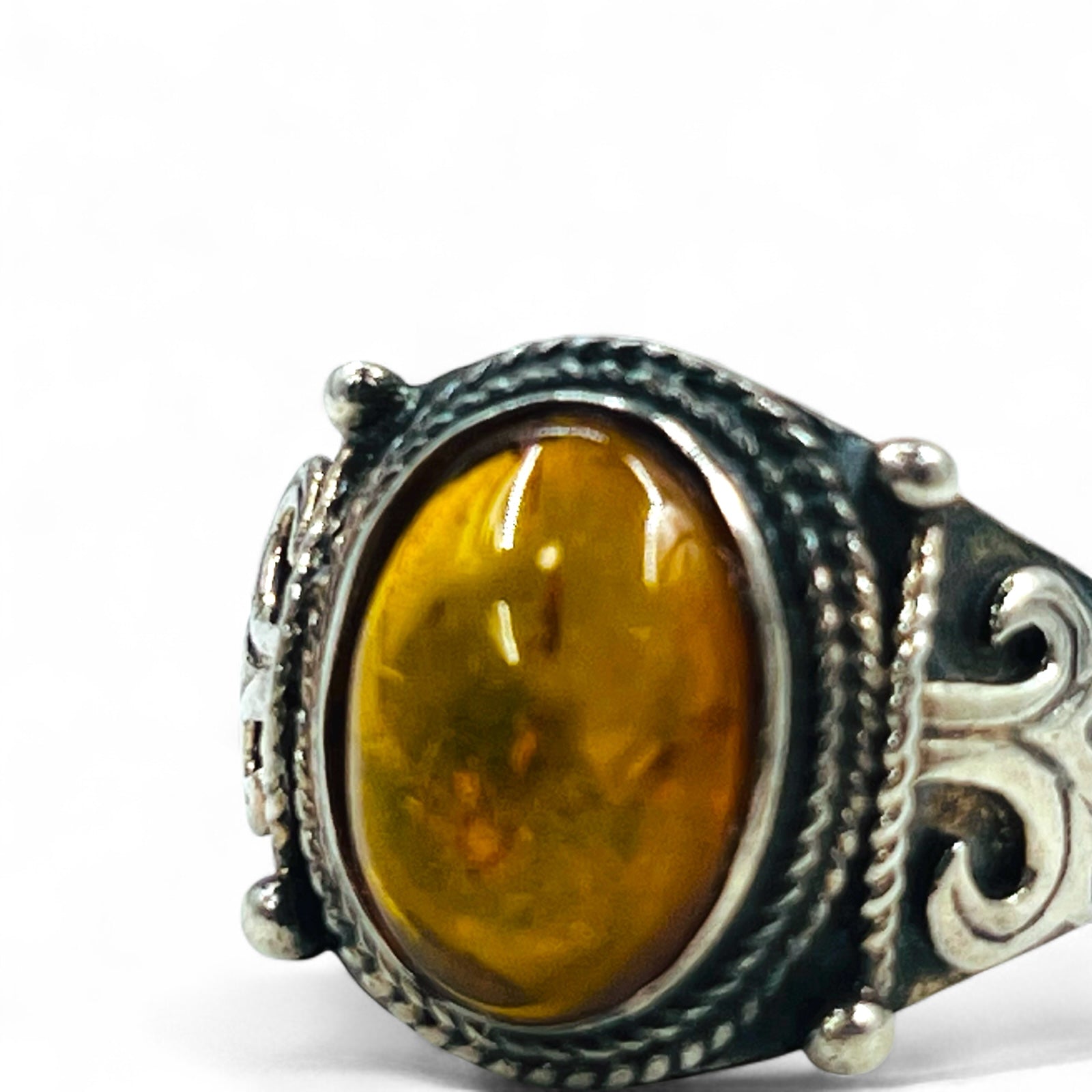 Vintage Silver Amber Ring Vintage oval amber stone ring, size 17, 925 silver