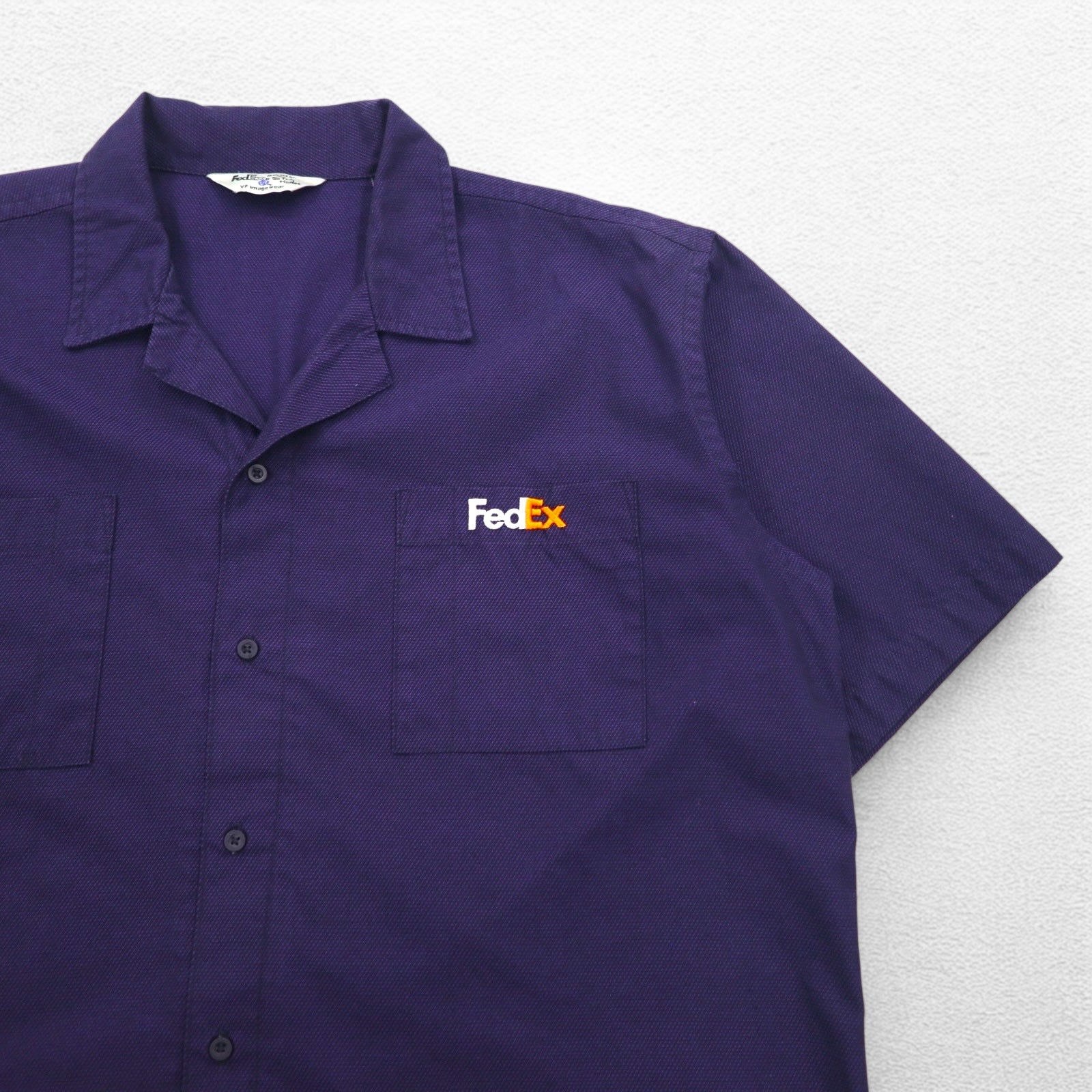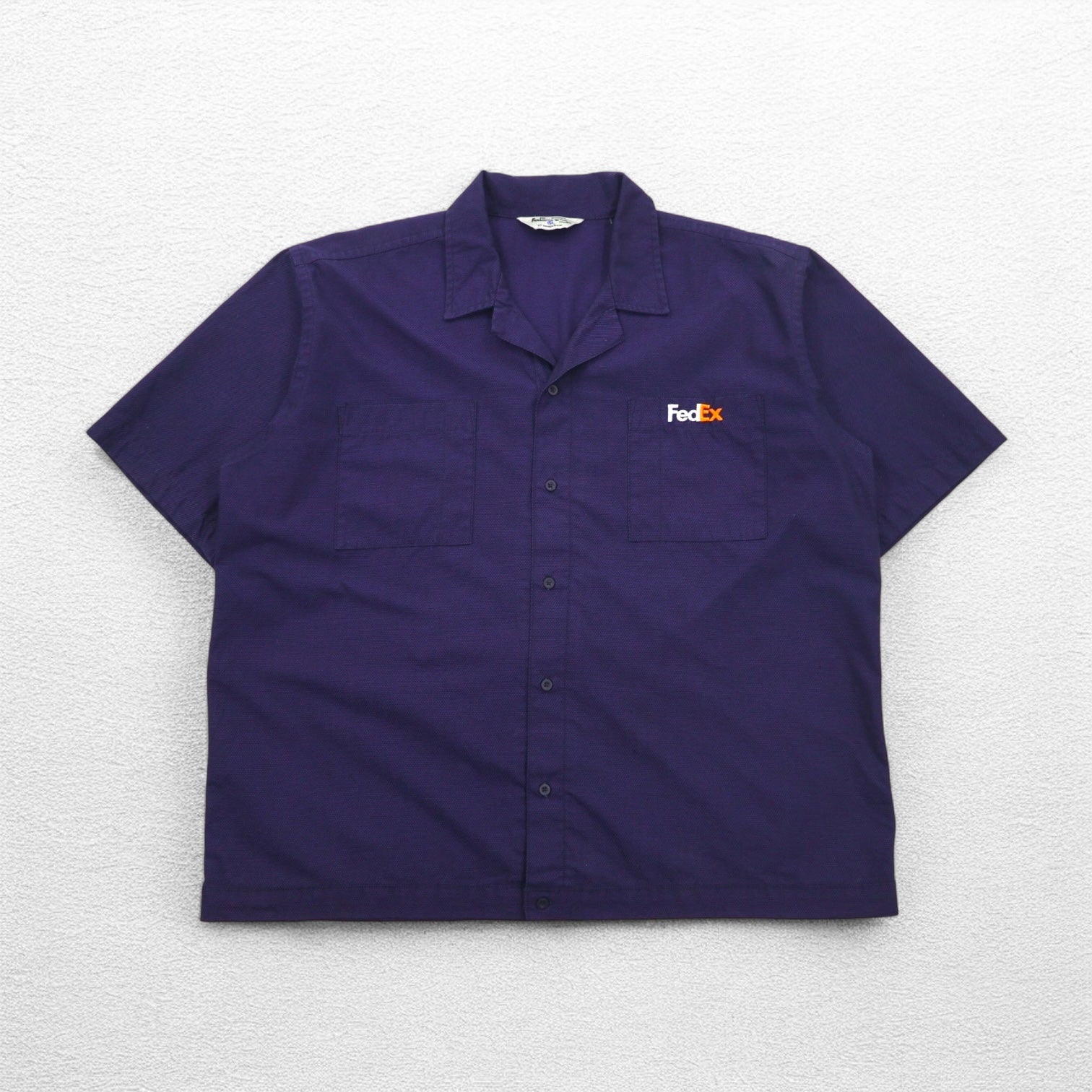 FedEx 90s Open-neck Work Shirt, Short Sleeve, Open Collar, XL, Purple, American, Corporate, Boxy Silhouette, Designed By Stan Herman, VF Imagewear