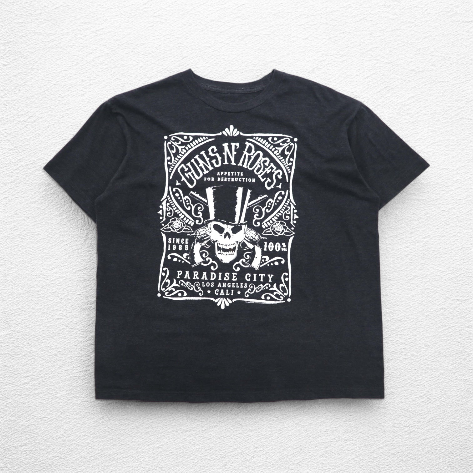 GUNS N' ROSES Rock Band T-Shirt XL Gray Cotton PARADISE CITY Skull Bravado Made in Mexico