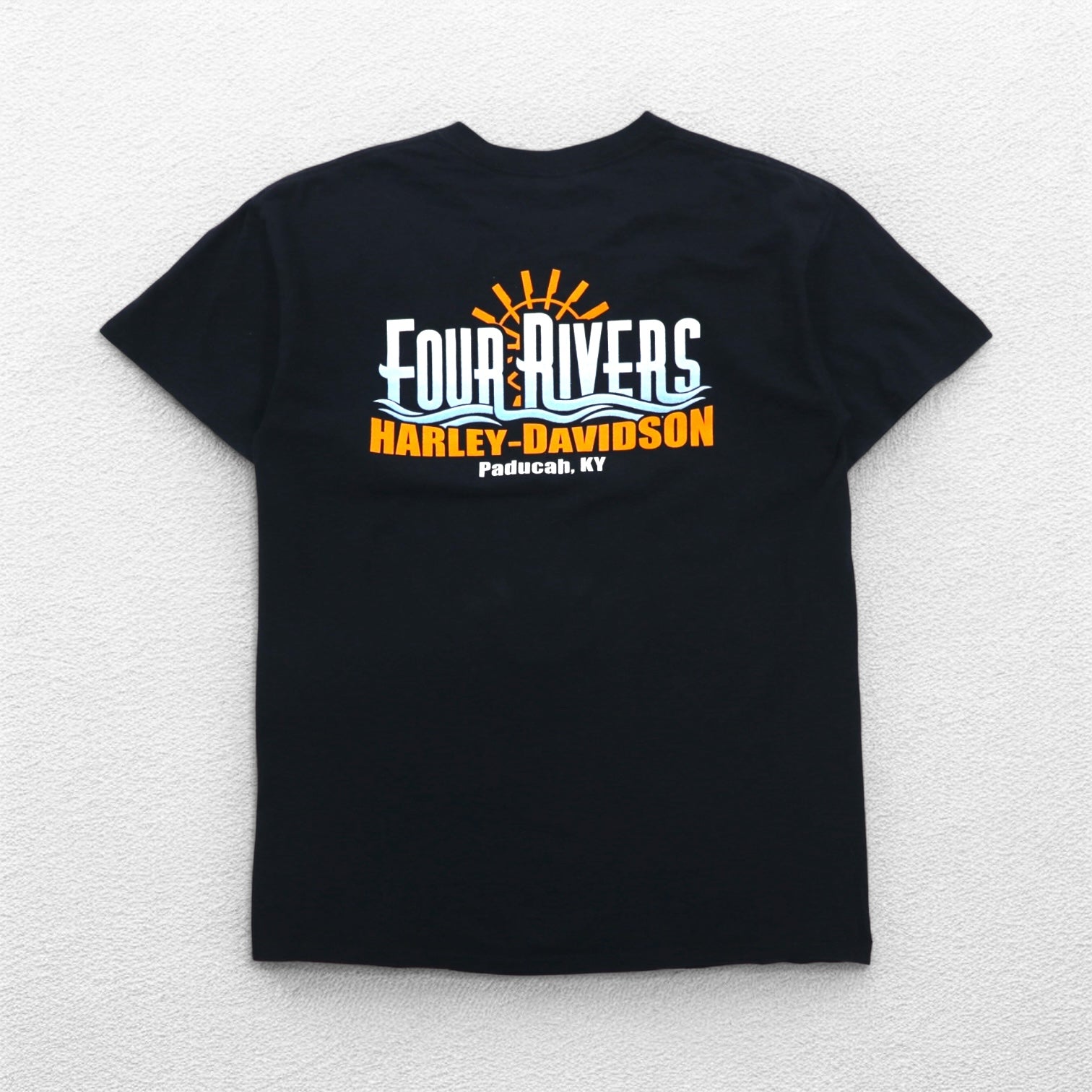 HARLEY DAVIDSON Double-sided Print T-shirt L Black Cotton FOUR RIVERS