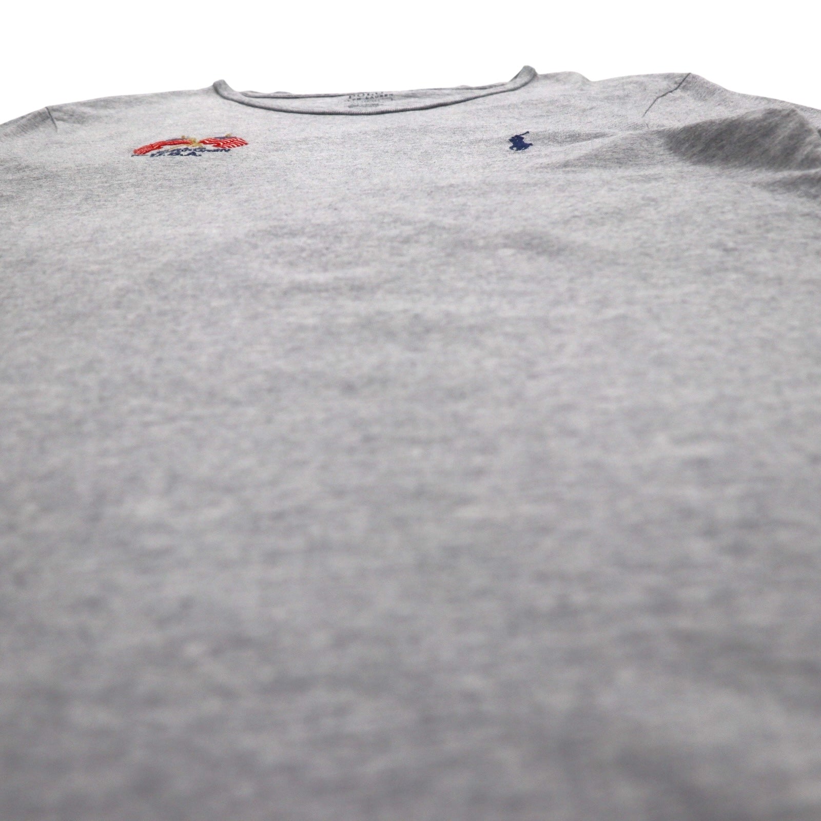 POLO RALPH LAUREN Logo Embroidered T-Shirt, Medium, Gray, Cotton, Stars and Stripes, USA, Small Pony Embroidery
