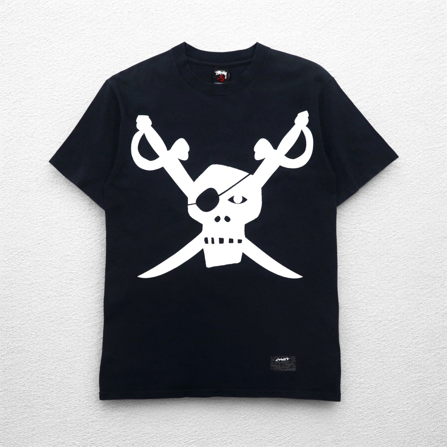STUSSY Skull Pirate Print T-Shirt, S, Black, Cotton, Made in Mexico
