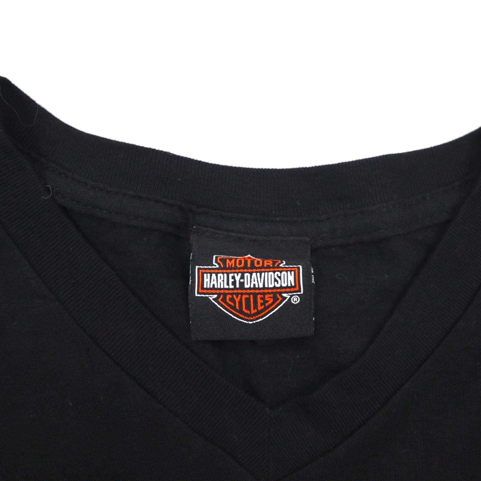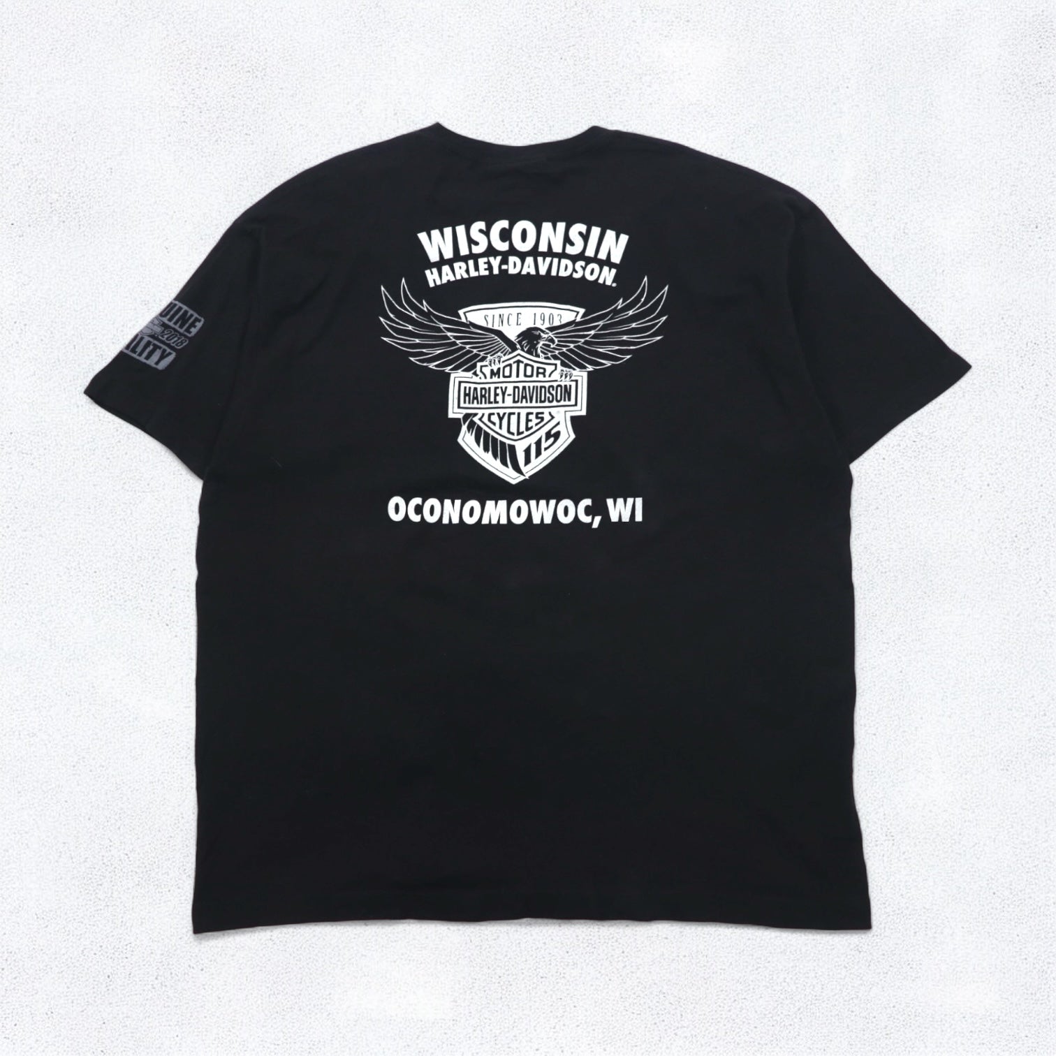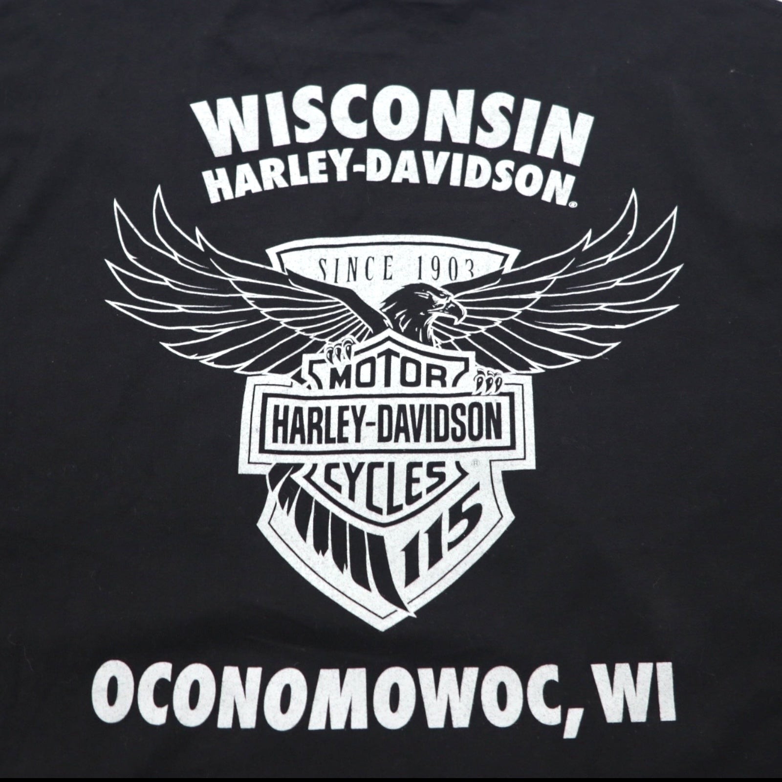 HARLEY DAVIDSON Double-sided Print V-neck T-shirt 2XL Black Bike WISCONSIN