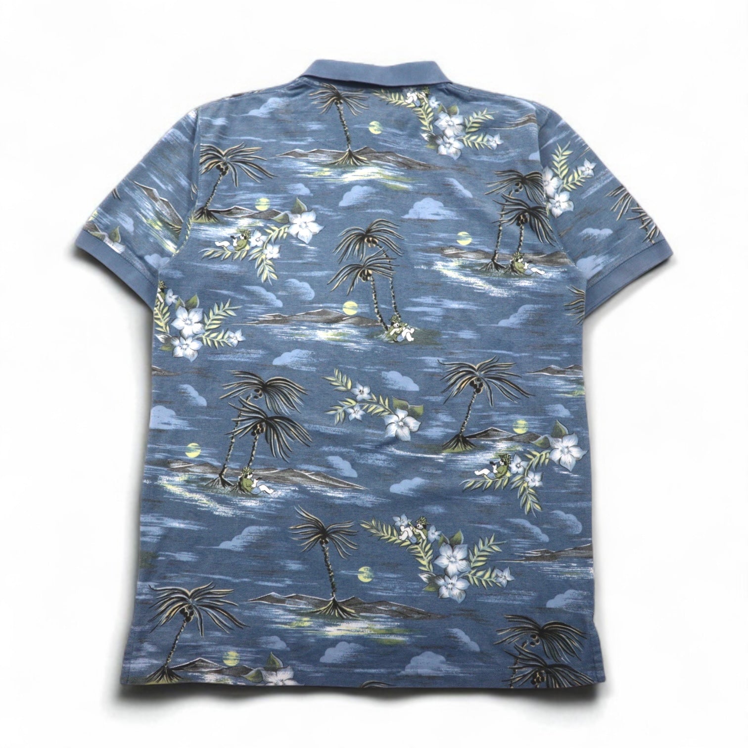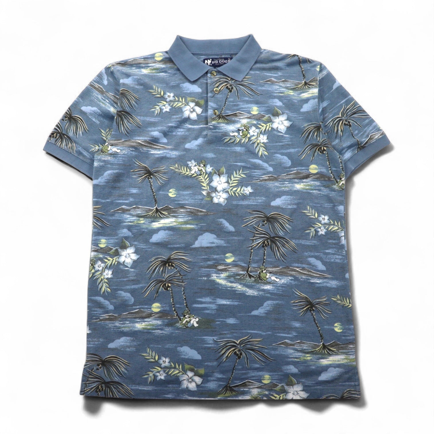 BIG DOGS 90s Hawaiian Polo Shirt, Size M, Blue, All-Over Print, Cotton and Polyester