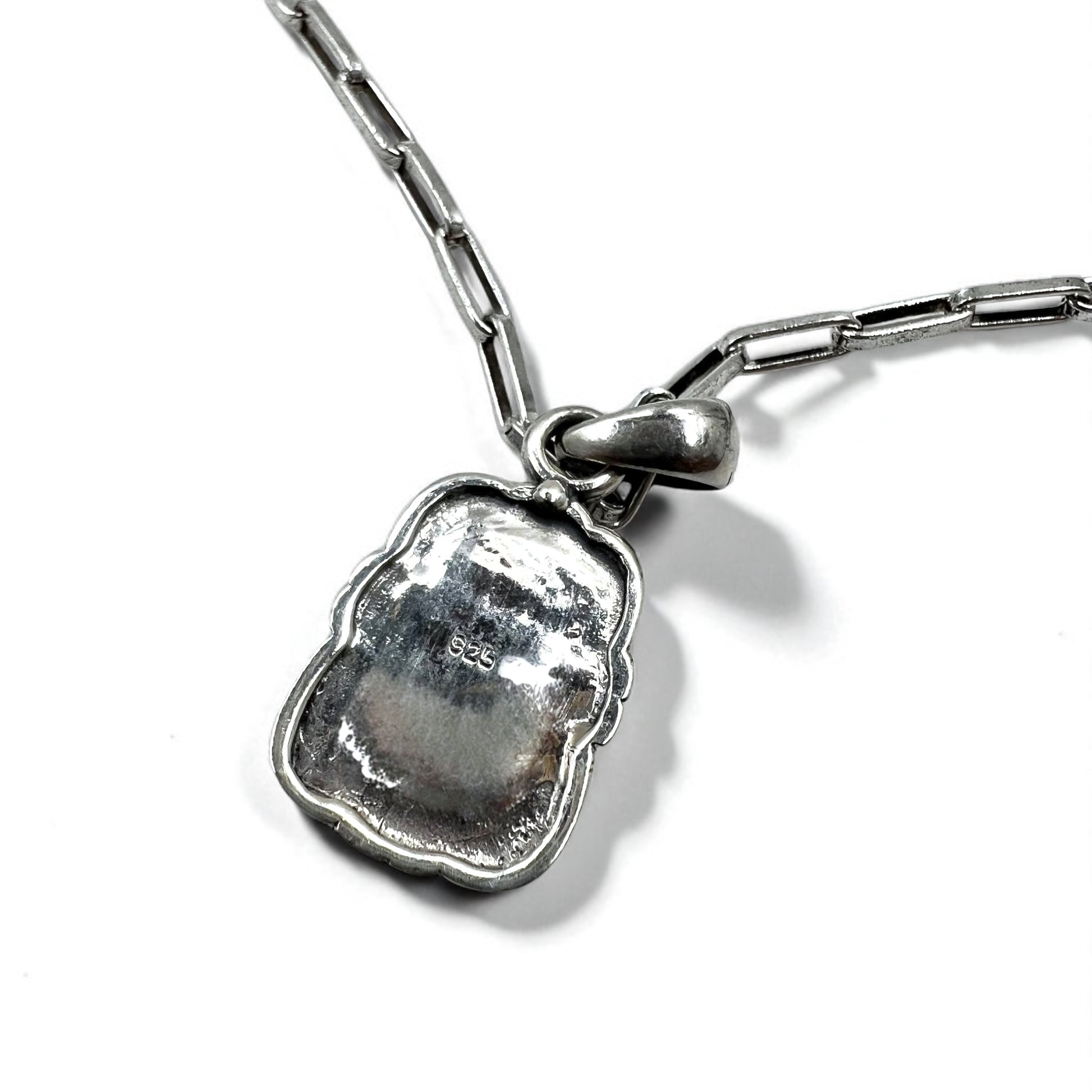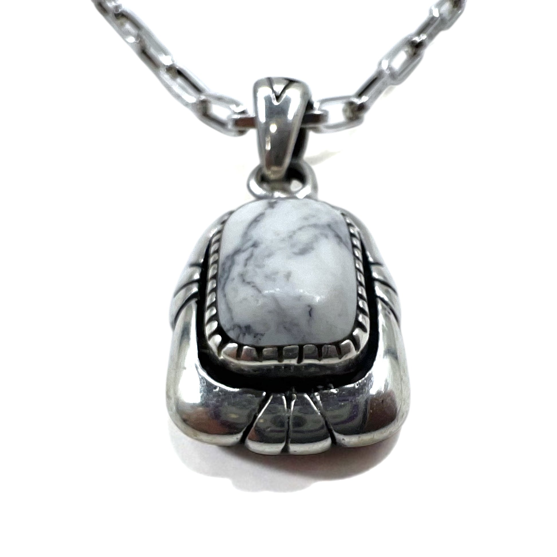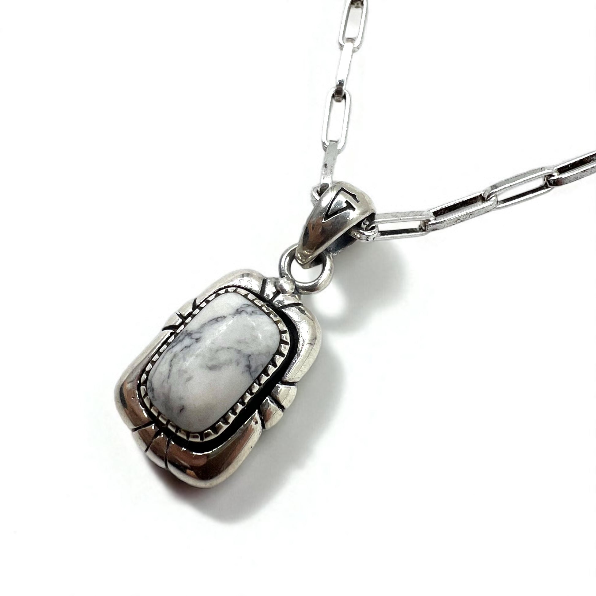 Vintage White Turquoise Pendant Necklace, Indian Jewelry, White Turquoise, Hopi Chain Necklace Pendant, Silver 925, G Stamp