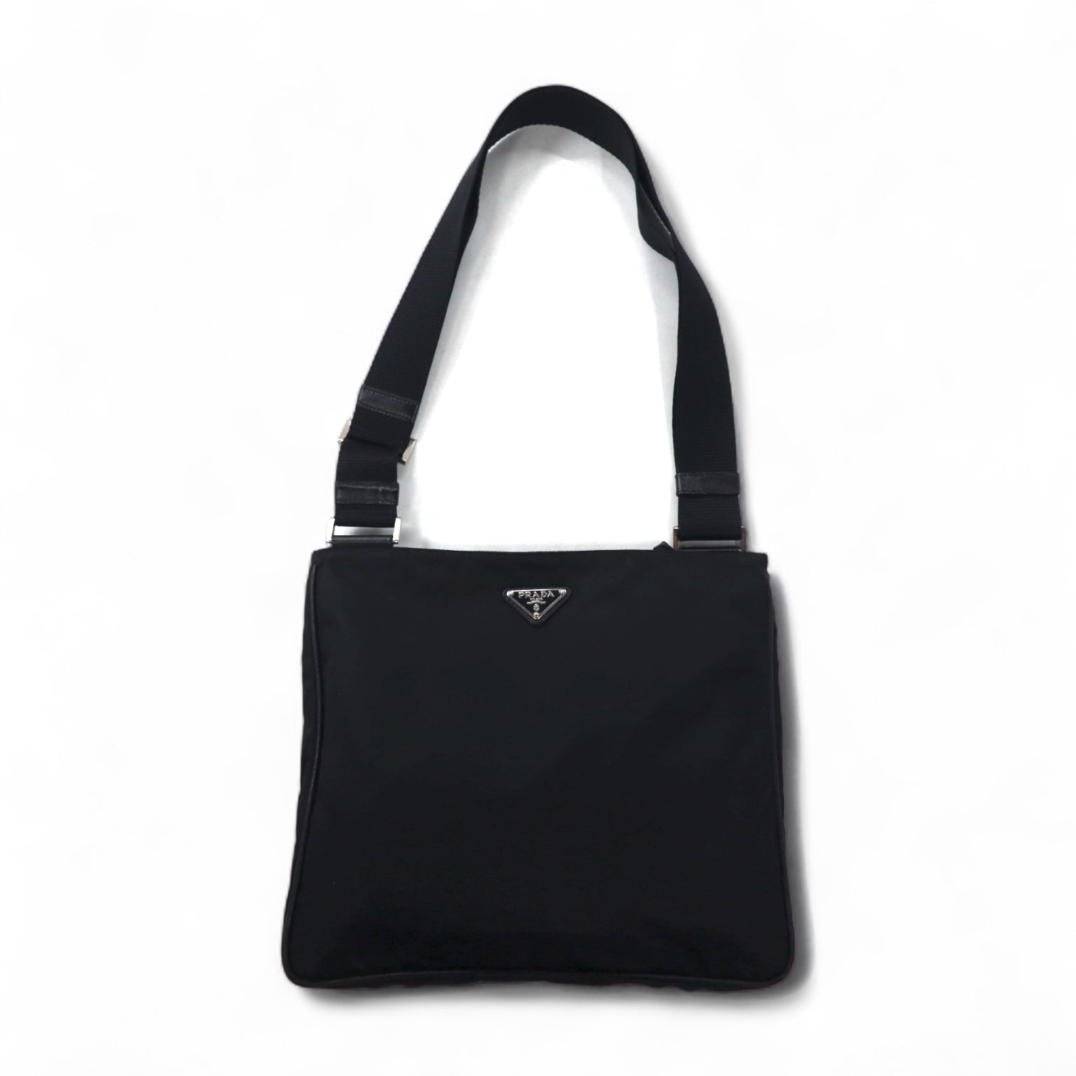 PRADA Crossbody Shoulder Bag in Black Nylon with Triangle Logo Plaque, Made in Italy