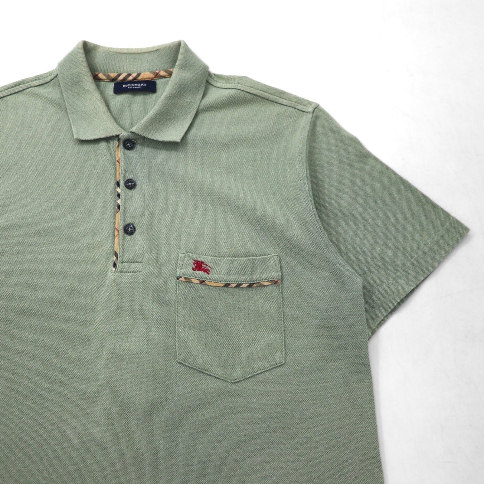 BURBERRY Polo Shirt, Size L, Khaki Cotton, Pique, Chest Pocket, One-Point Logo Embroidery