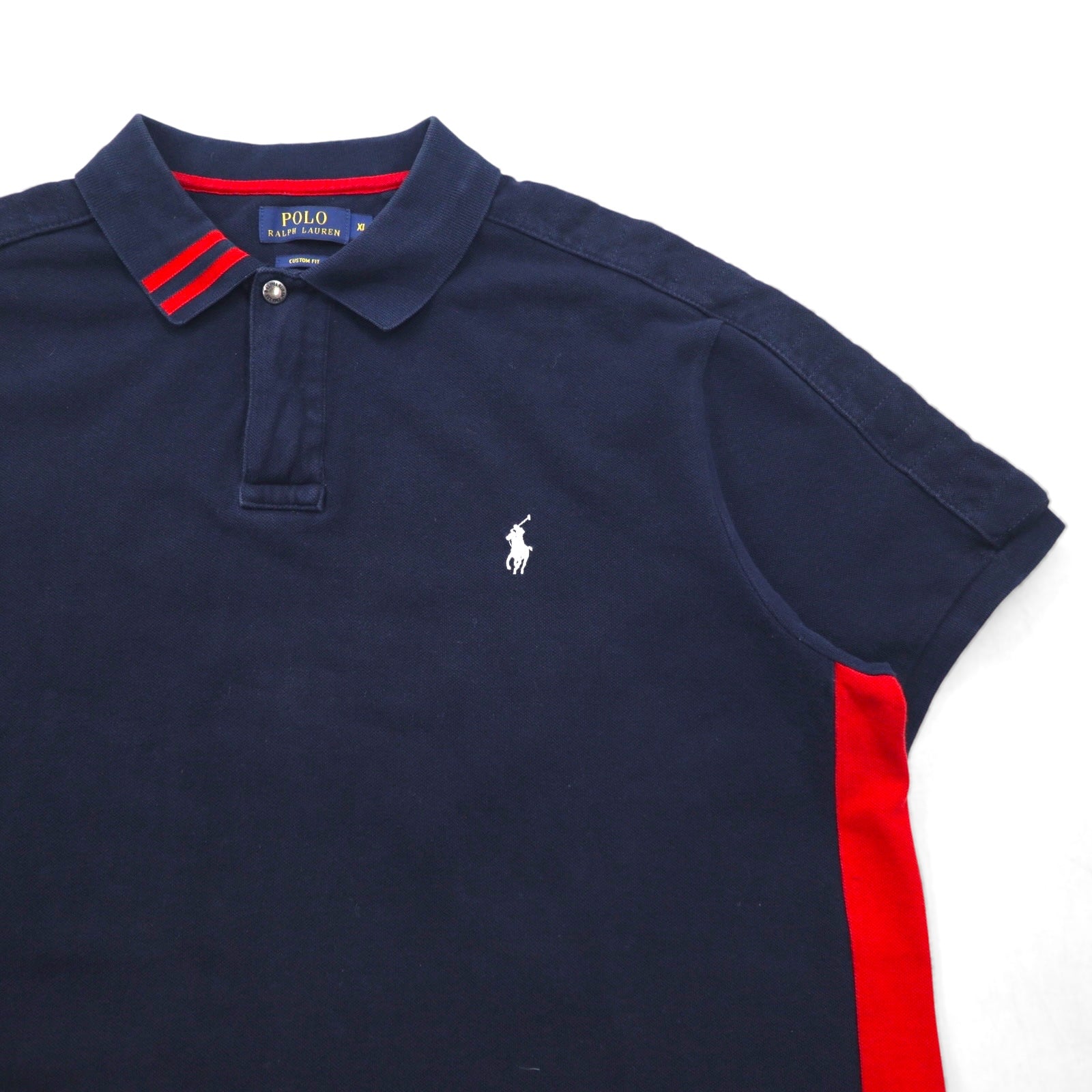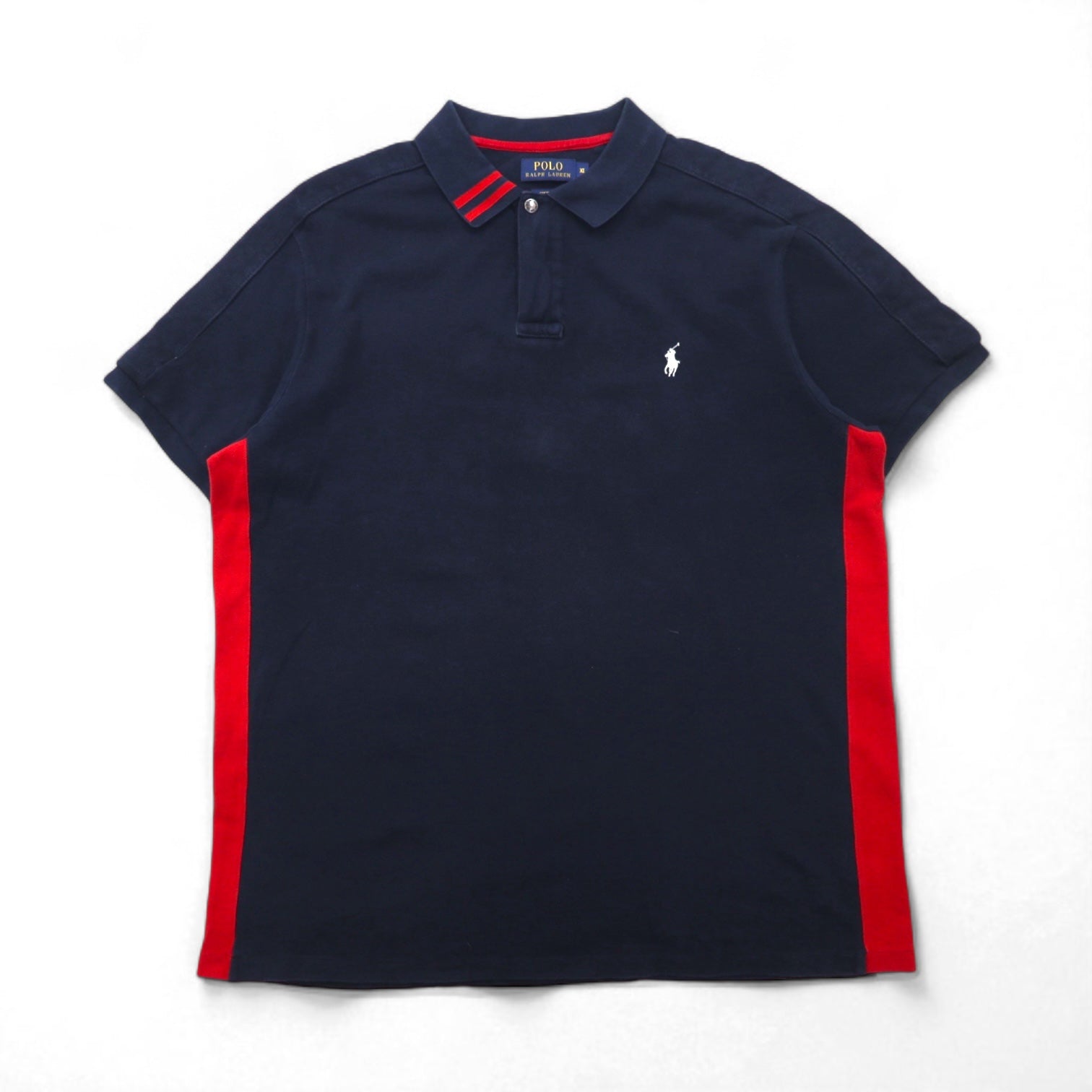 POLO RALPH LAUREN polo shirt, size XL, navy and red, cotton, pique fabric, half-zip closure, snap buttons, small pony embroidery.