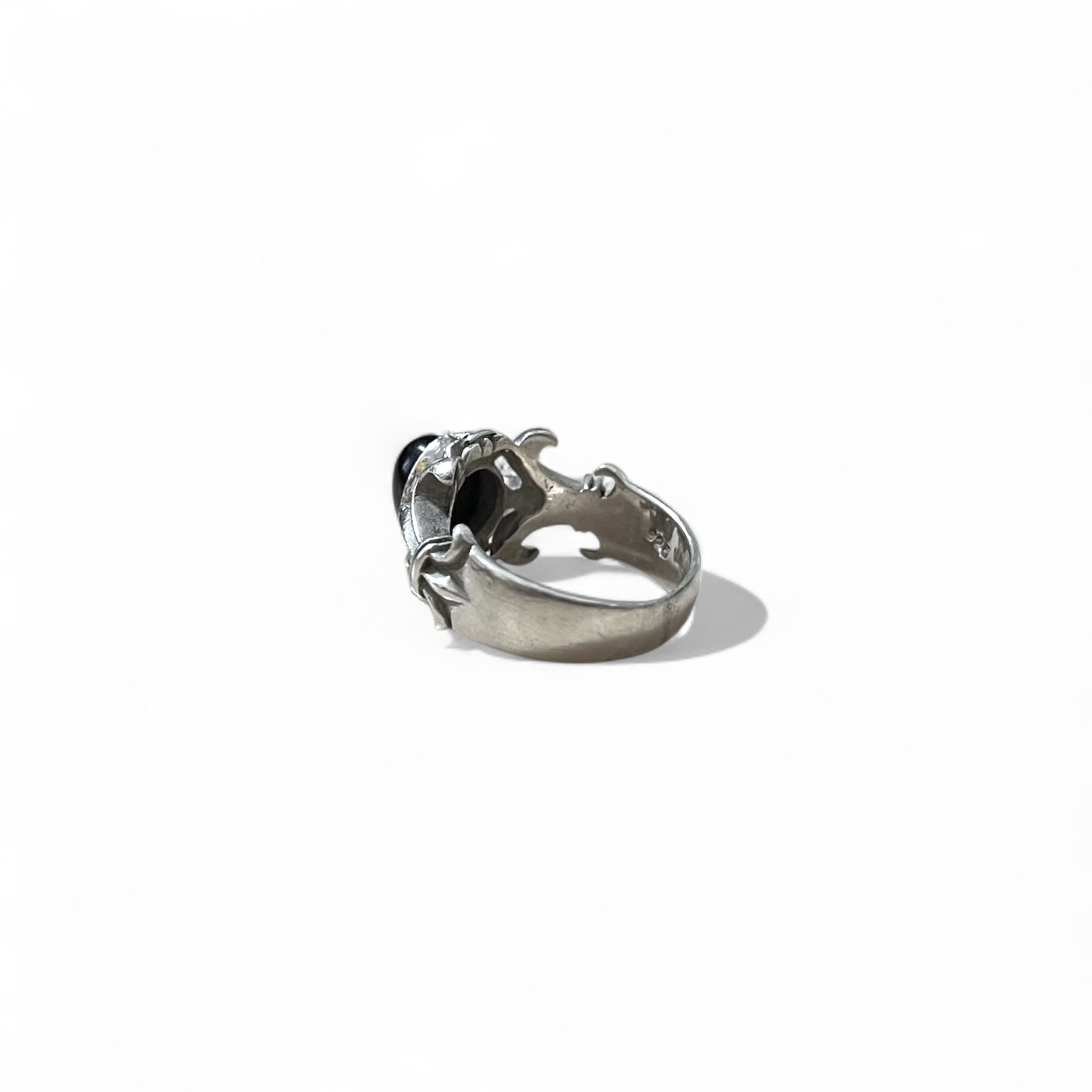 Vintage Black Onyx Silver Ring, Black Onyx Tribal Ring, Size 21, 925