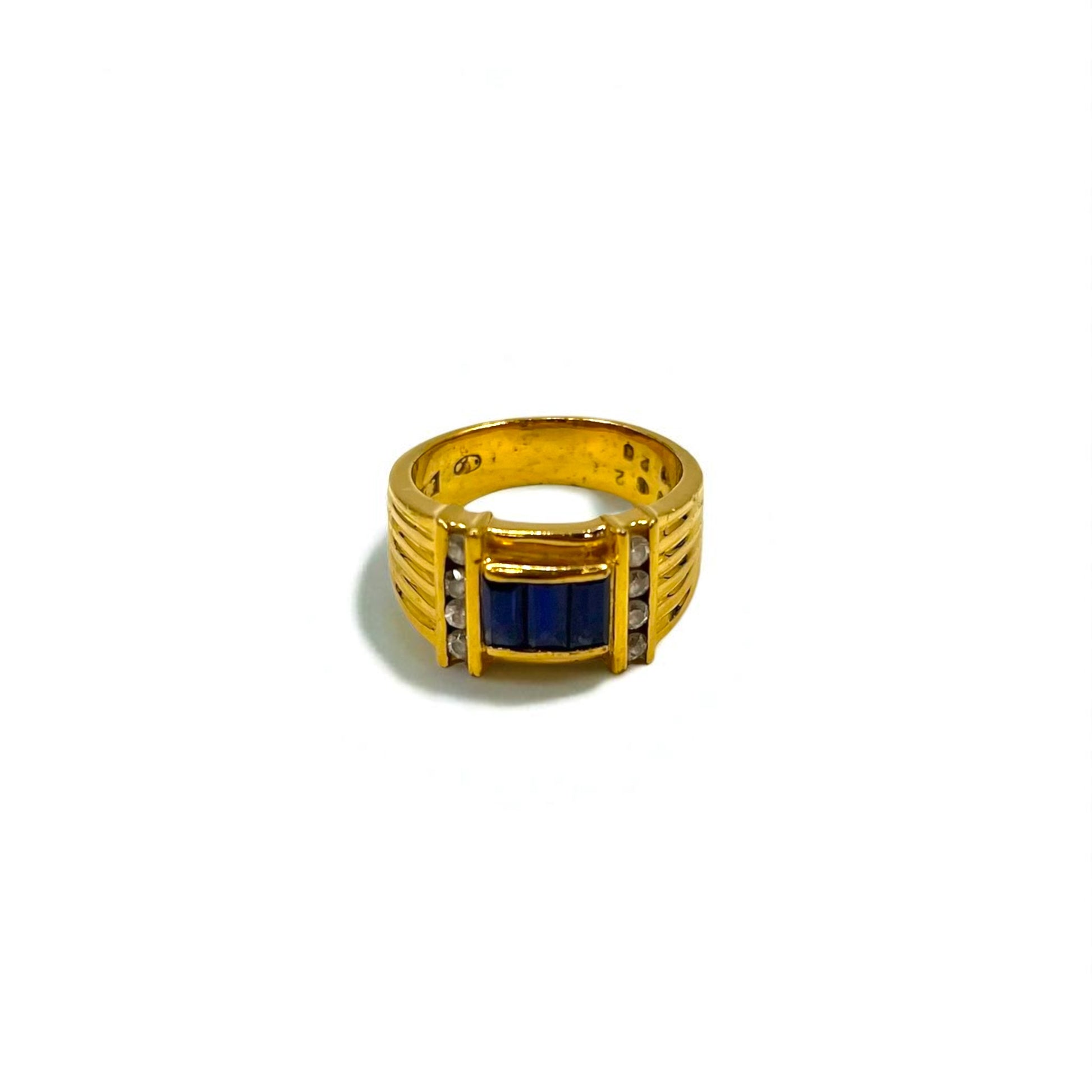 Vintage Gold Plated Retro Ring, Size 11, 18K Gold with Line and Colored Stones