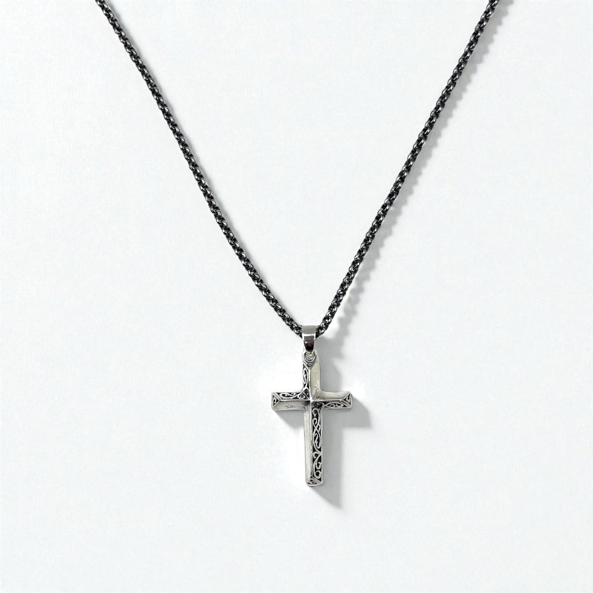 Vintage Silver Cross Necklace, Arabesque Design, Silver 925