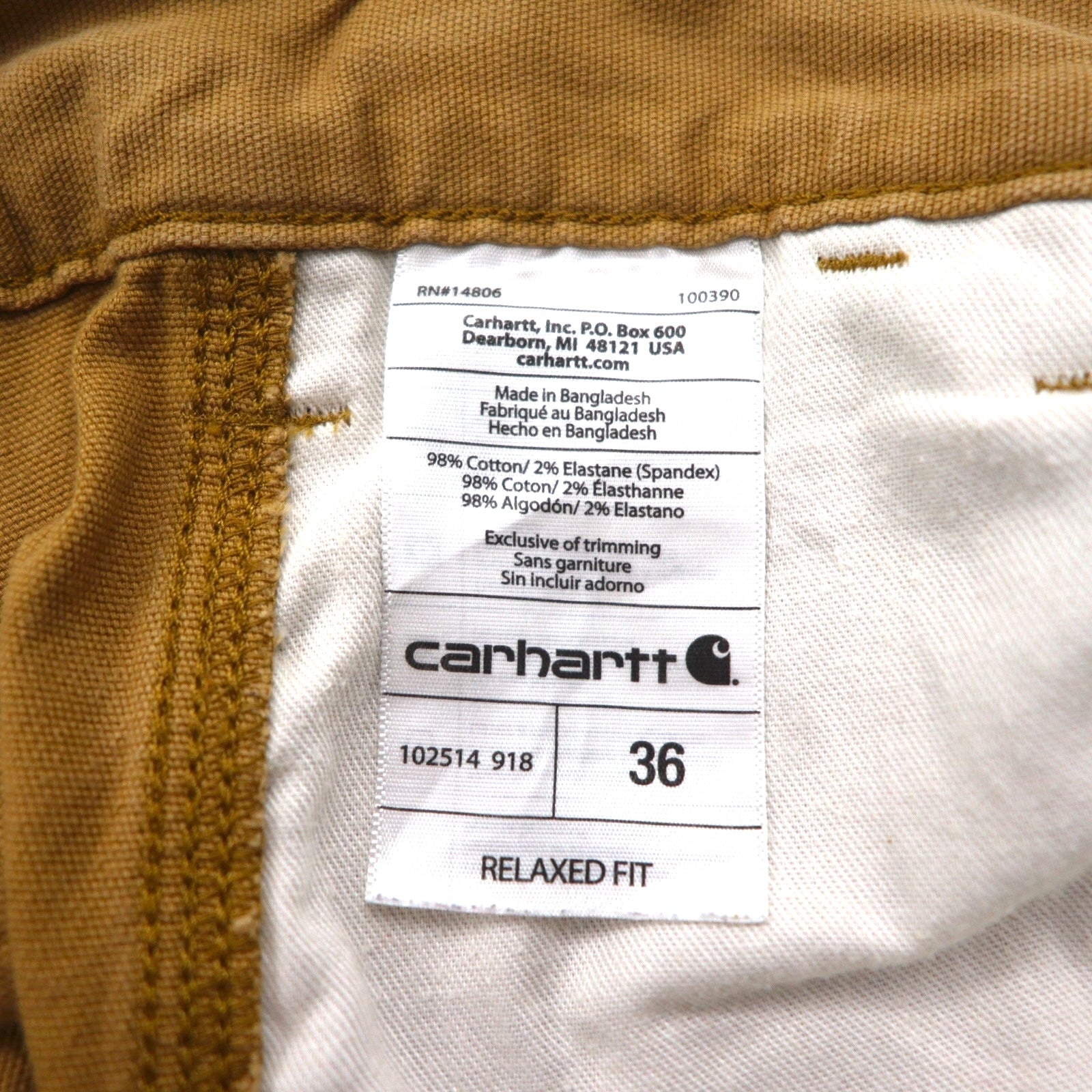 Carhartt Rugged Flex Rigby Work Shorts, Relaxed Fit Duck Fabric, Size L, Beige, 102514