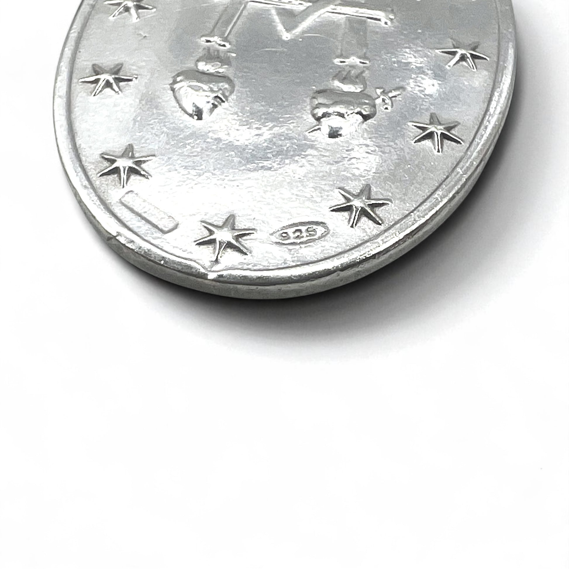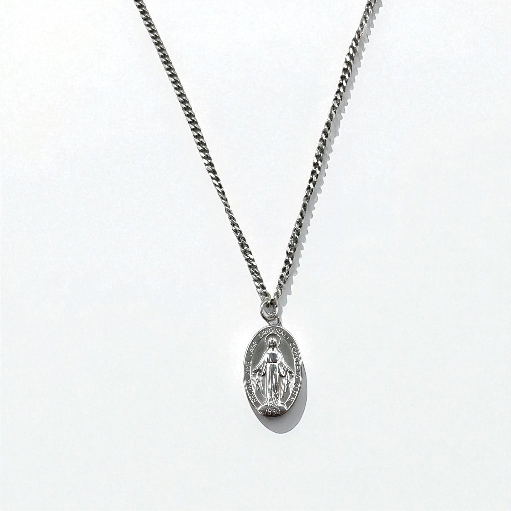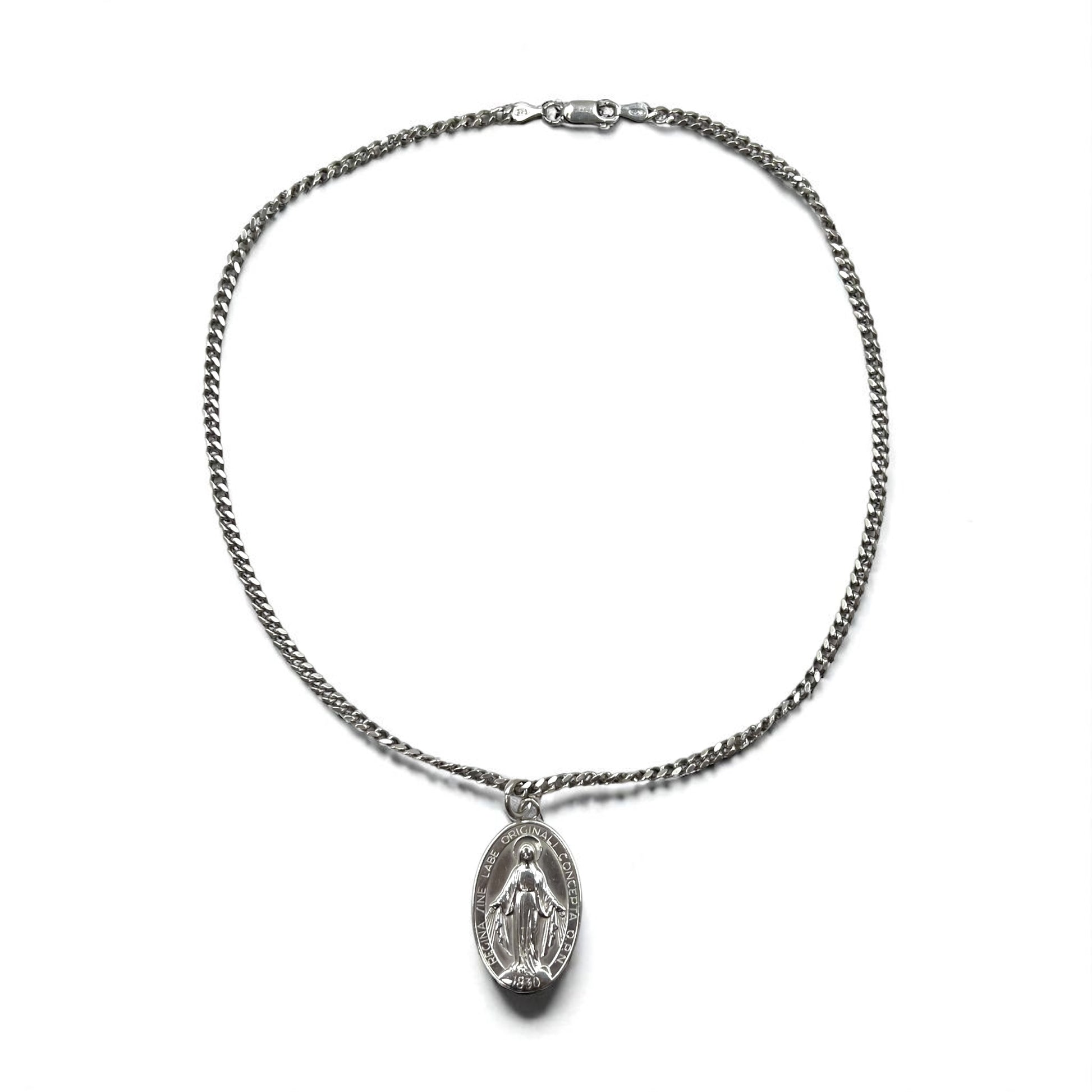 Vintage Virgin Mary Medal Silver Necklace, Virgin Mary Oval Coin Necklace, 925 Silver, Italy, with Curb Chain