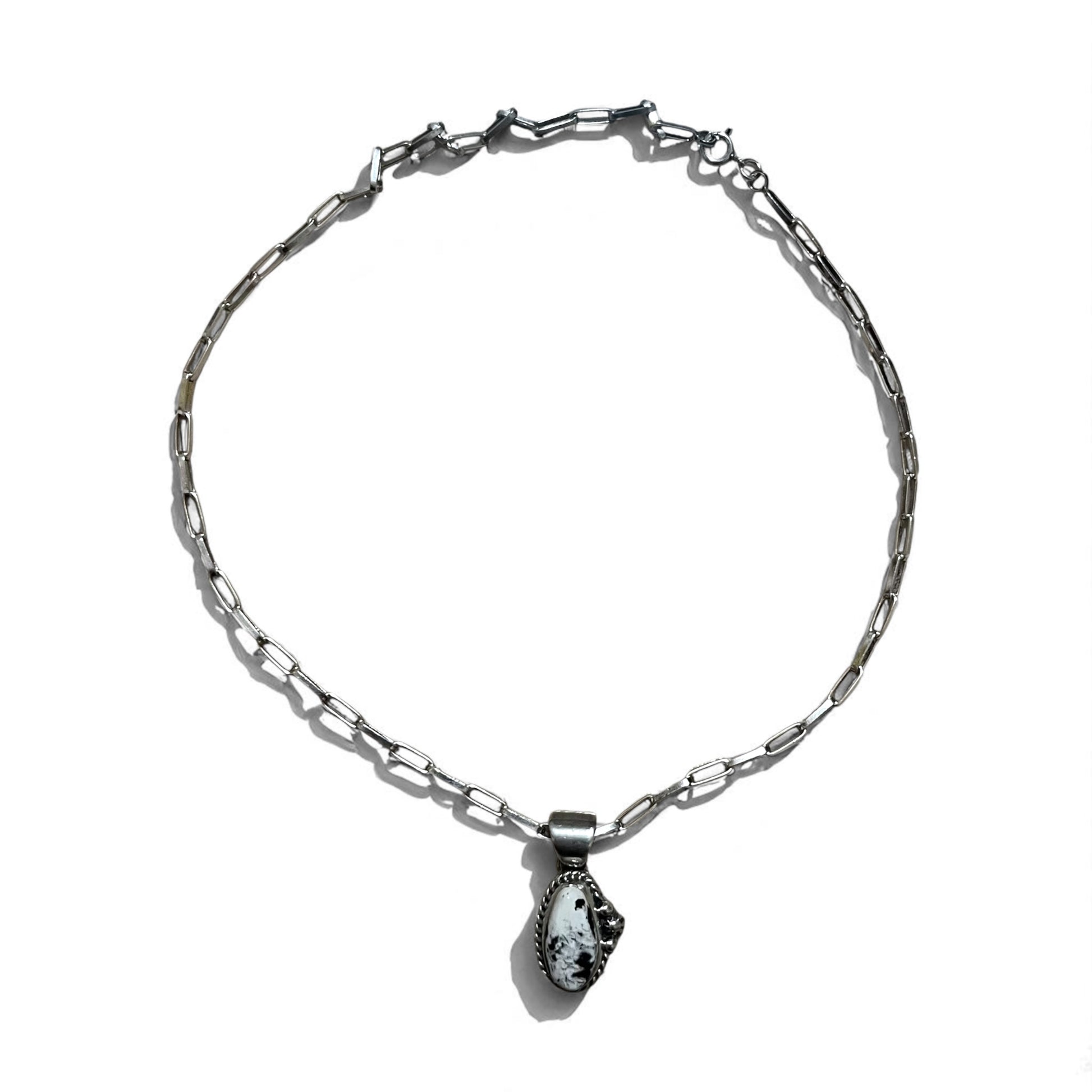 Vintage White Turquoise Necklace, Indian Jewelry, White Turquoise, Hopi Chain Necklace, Sterling Silver, Hallmark M Stamp