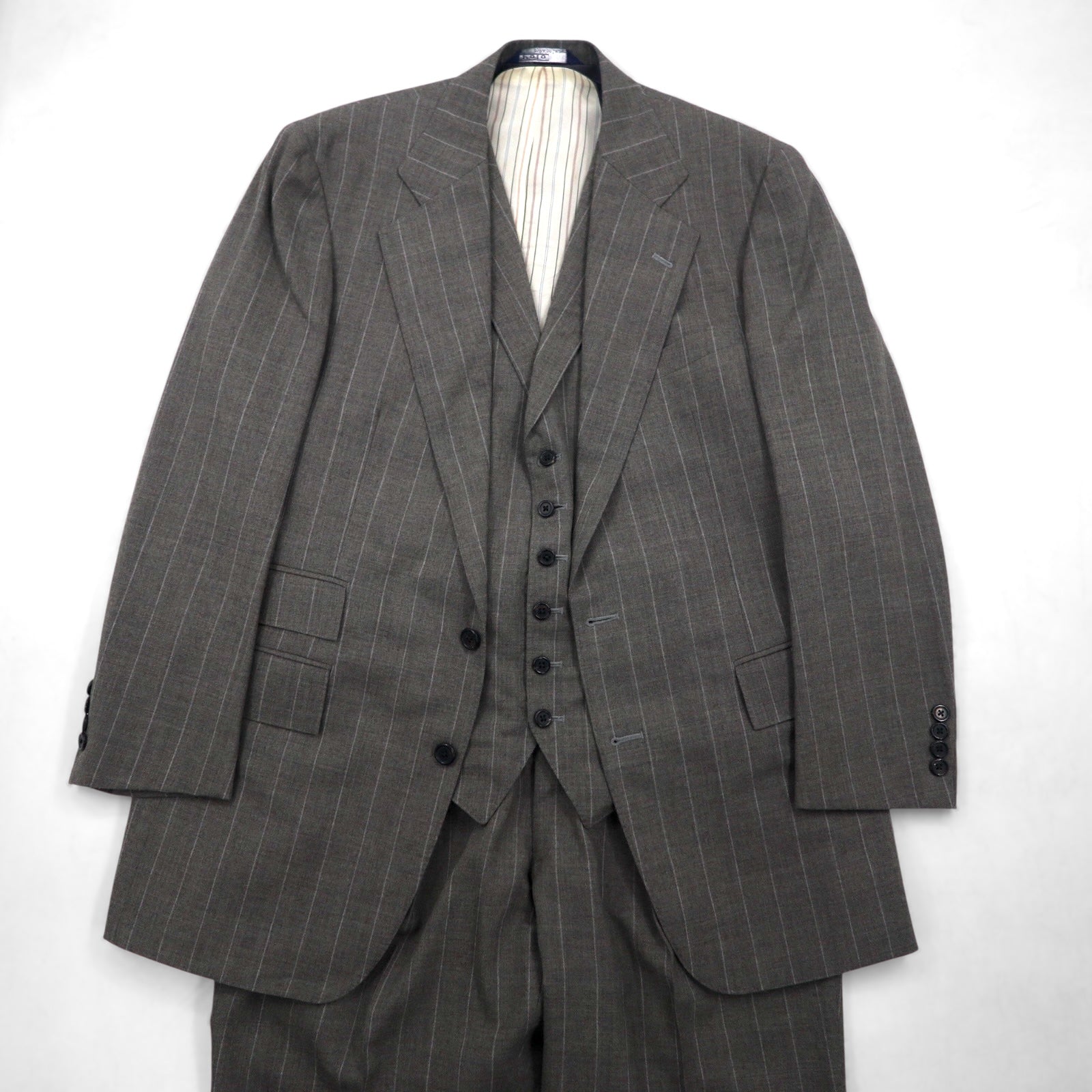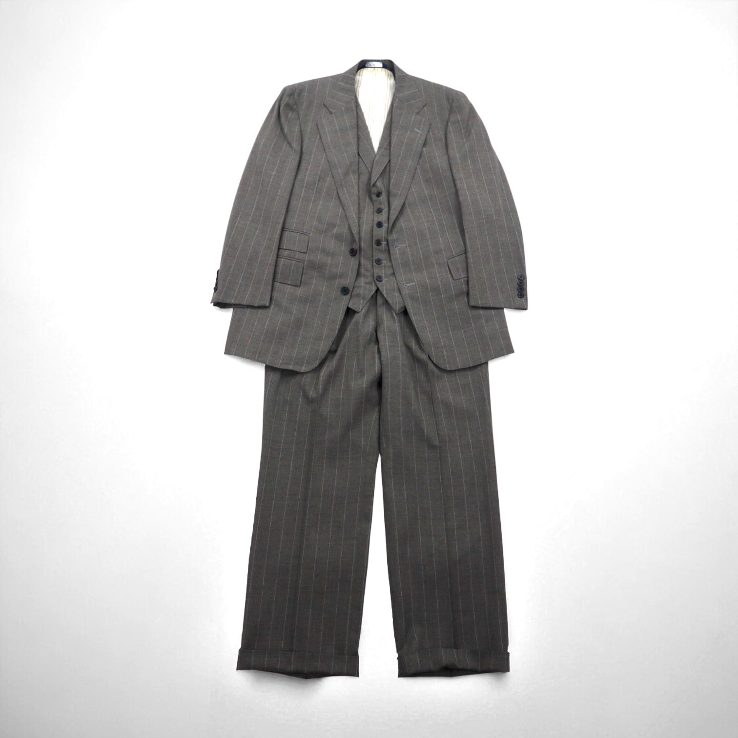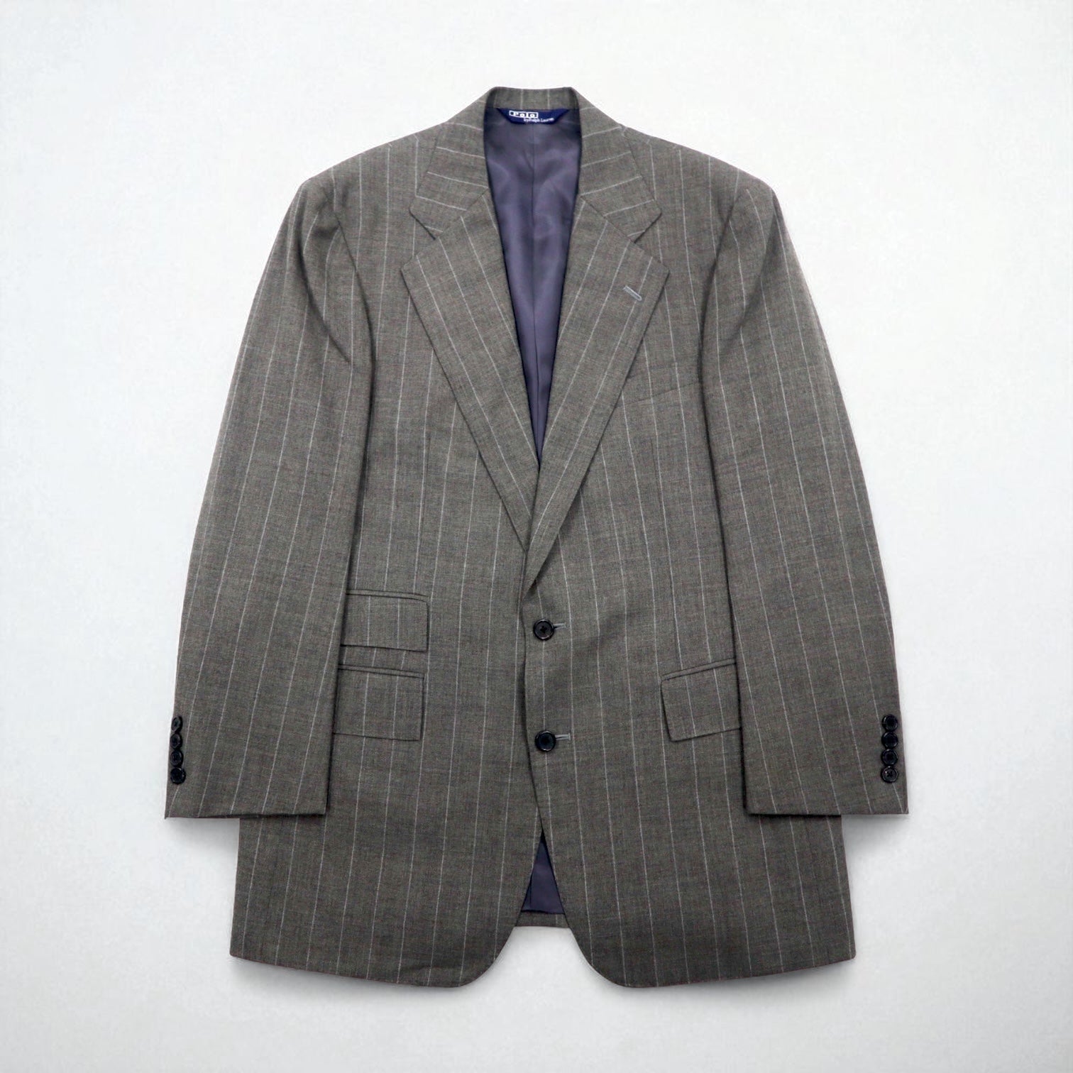 Polo by Ralph Lauren 90s 3-Piece Suit, Size L, Gray Striped Wool, Made in Japan