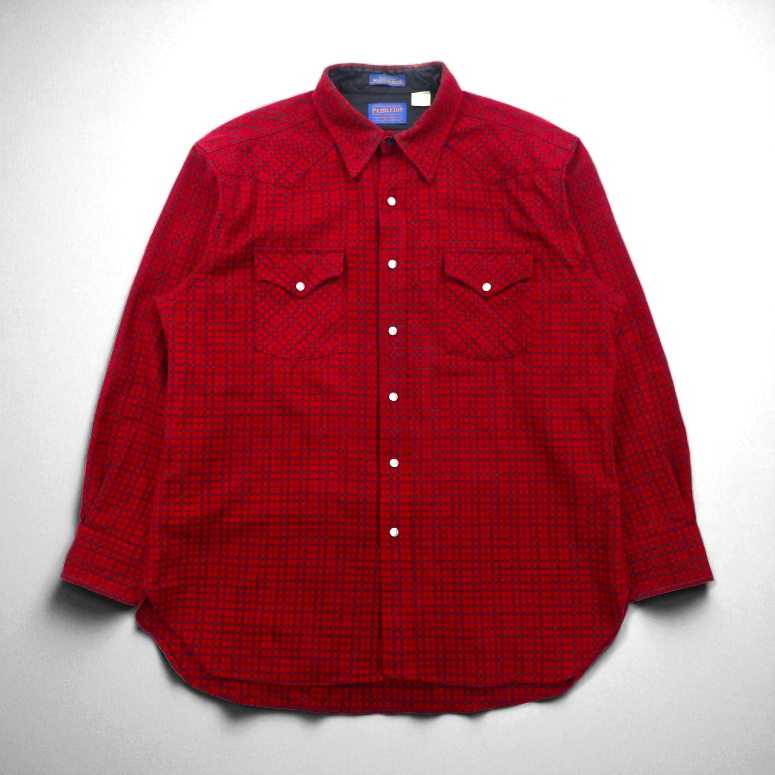 PENDLETON USA-Made HIGH GRADE WESTERN WEAR Flannel Western Shirt, Size XL, Red Check Wool, Snap Buttons, Double Pockets