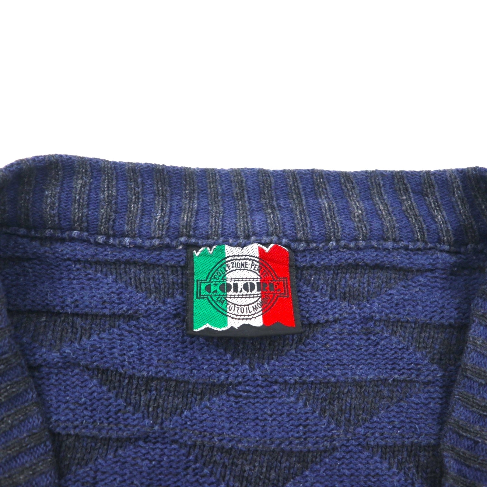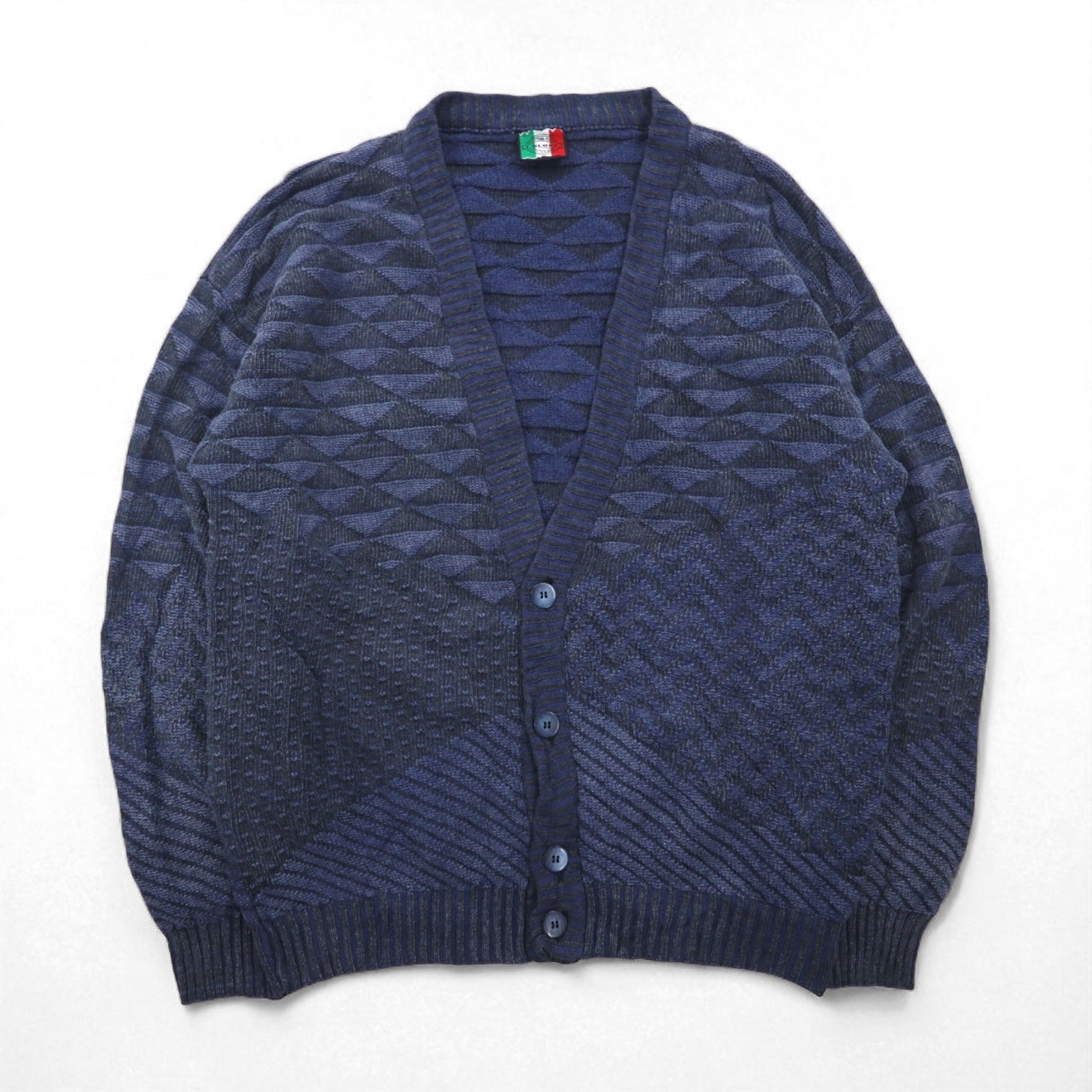 90s Italy Vintage Cardigan COLORE 90s Jacquard 3D Knit Cardigan XL Navy