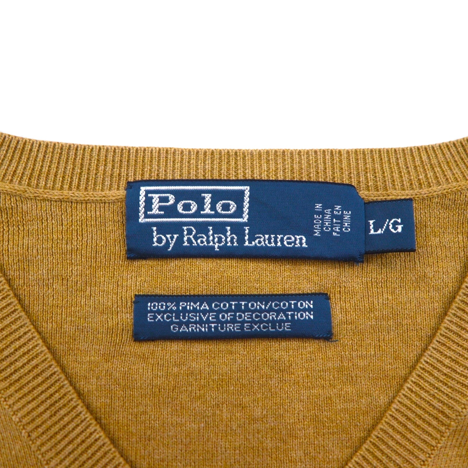 Polo Ralph Lauren 90s V-neck Pima cotton knit sweater, size L, beige, with small pony embroidery.