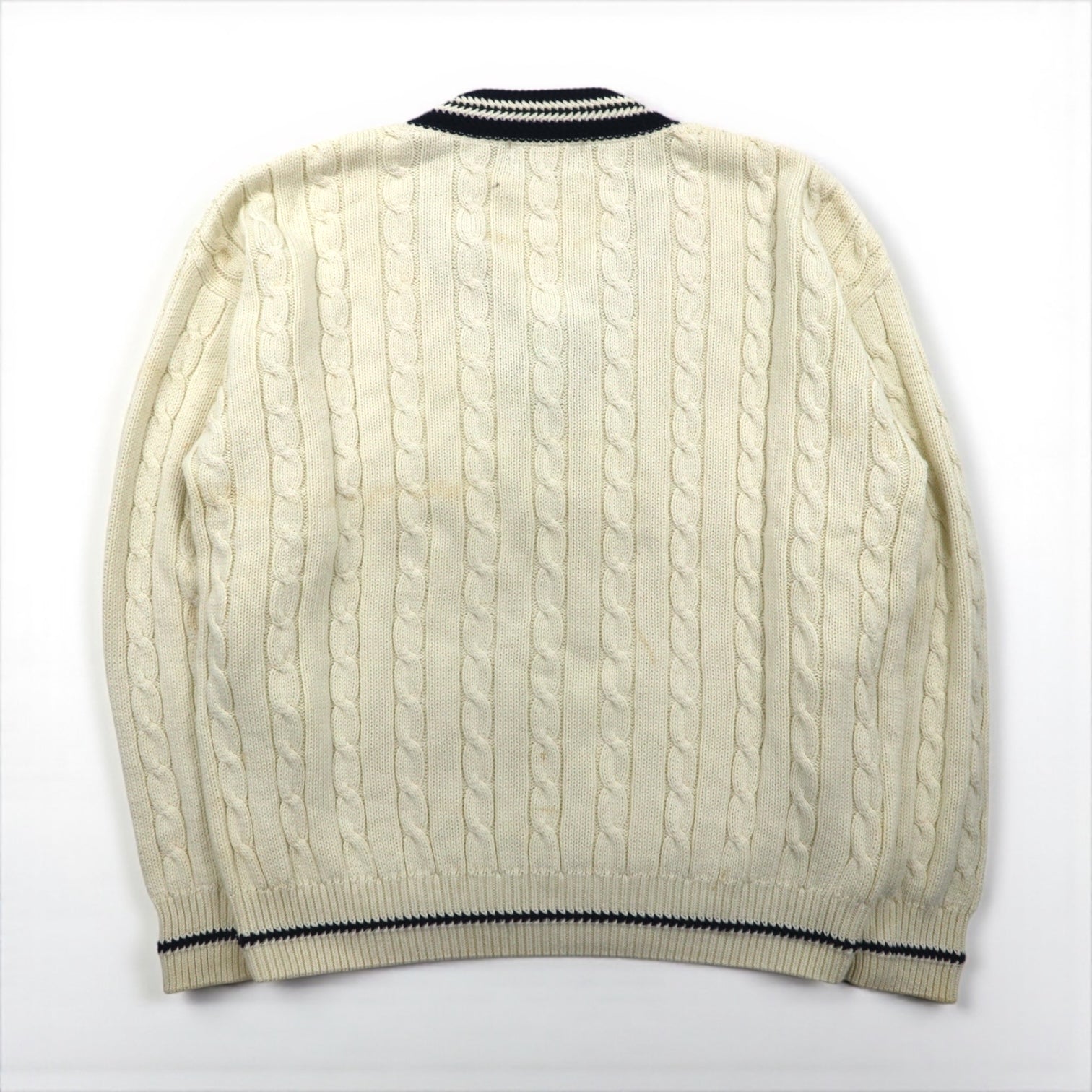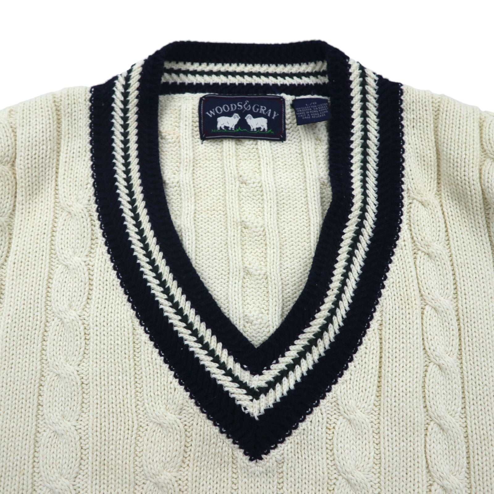 90s Vintage V-neck Knit Sweater, White, Cable Knit, Size L, WOODS&GRAY