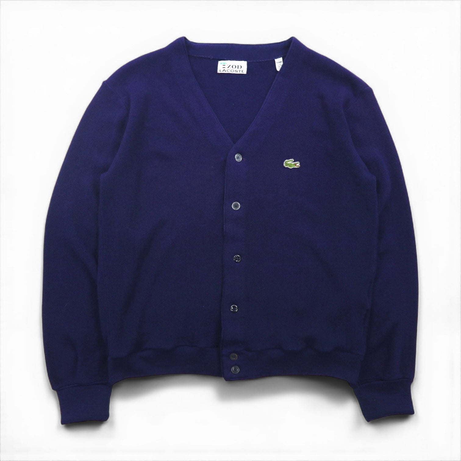 IZOD LACOSTE 70s Knit Cardigan with Spool Tag, Size Small, Navy, Acrylic, Short Length