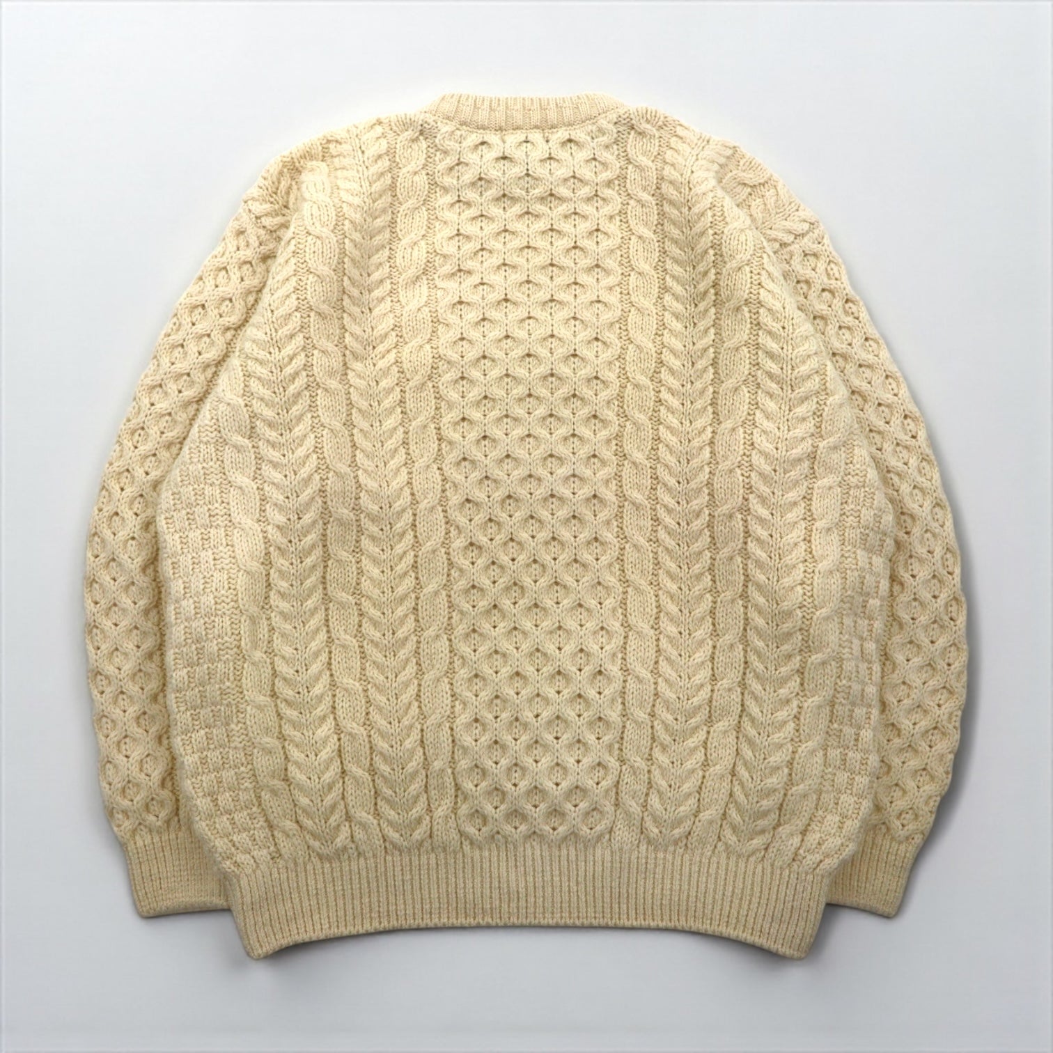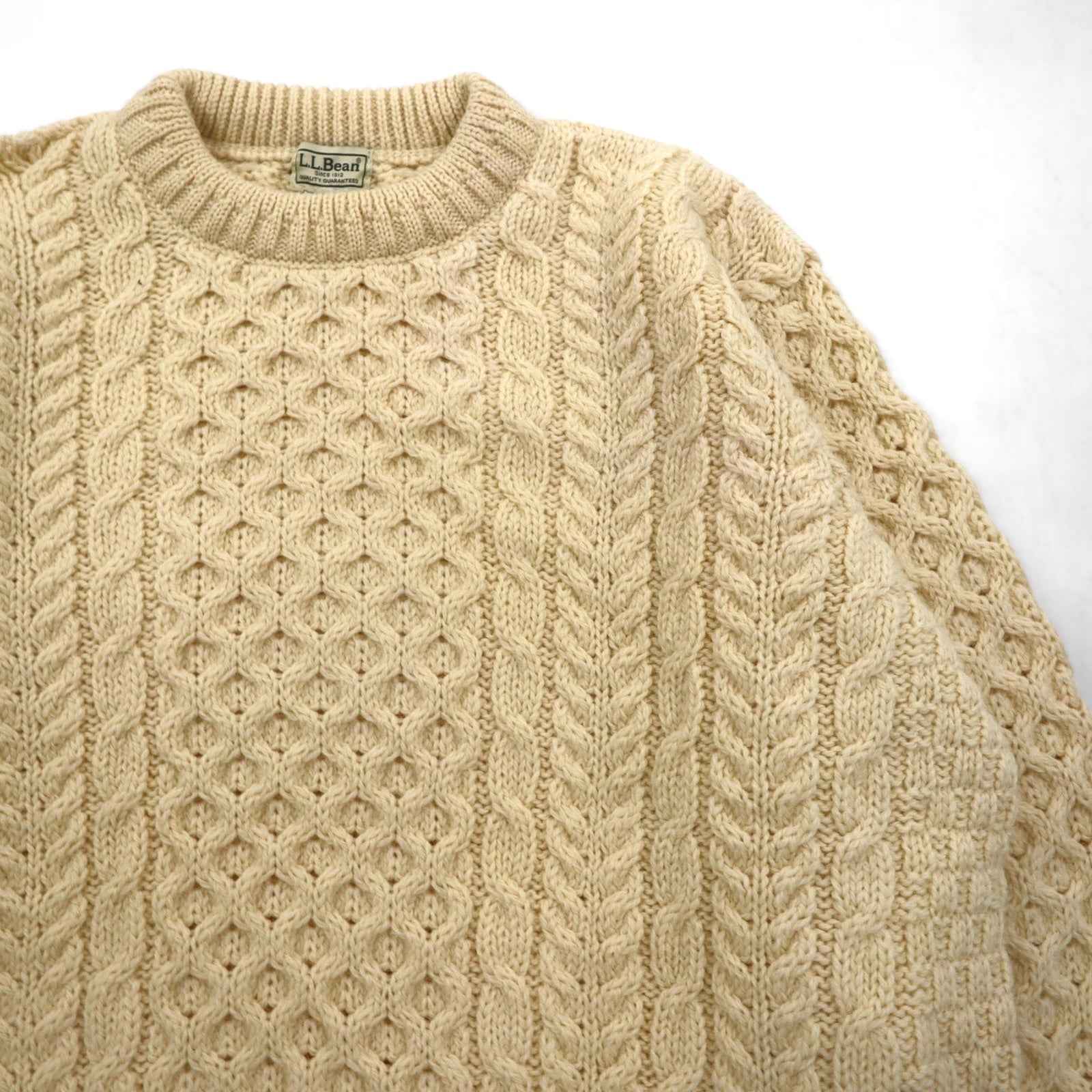 LLBean 90s Fisherman Aran Knit Sweater, Size XL, Off-White Wool, Made in Ireland