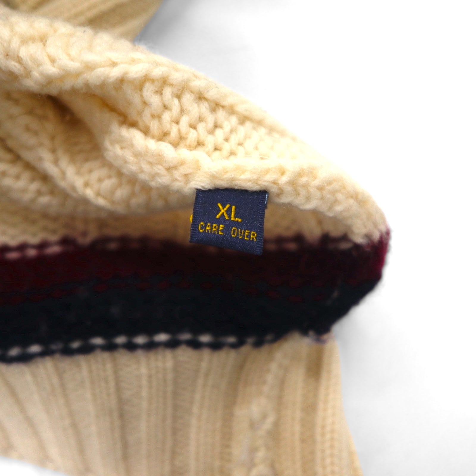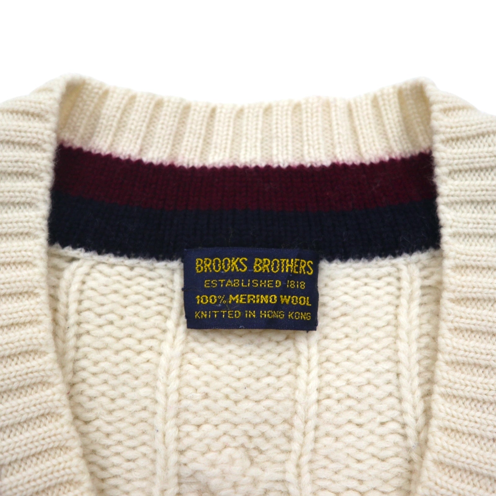Brooks Brothers 90s Childen Knit V-Neck Sweater, Size XL, Off-White Merino Wool Cable Knit