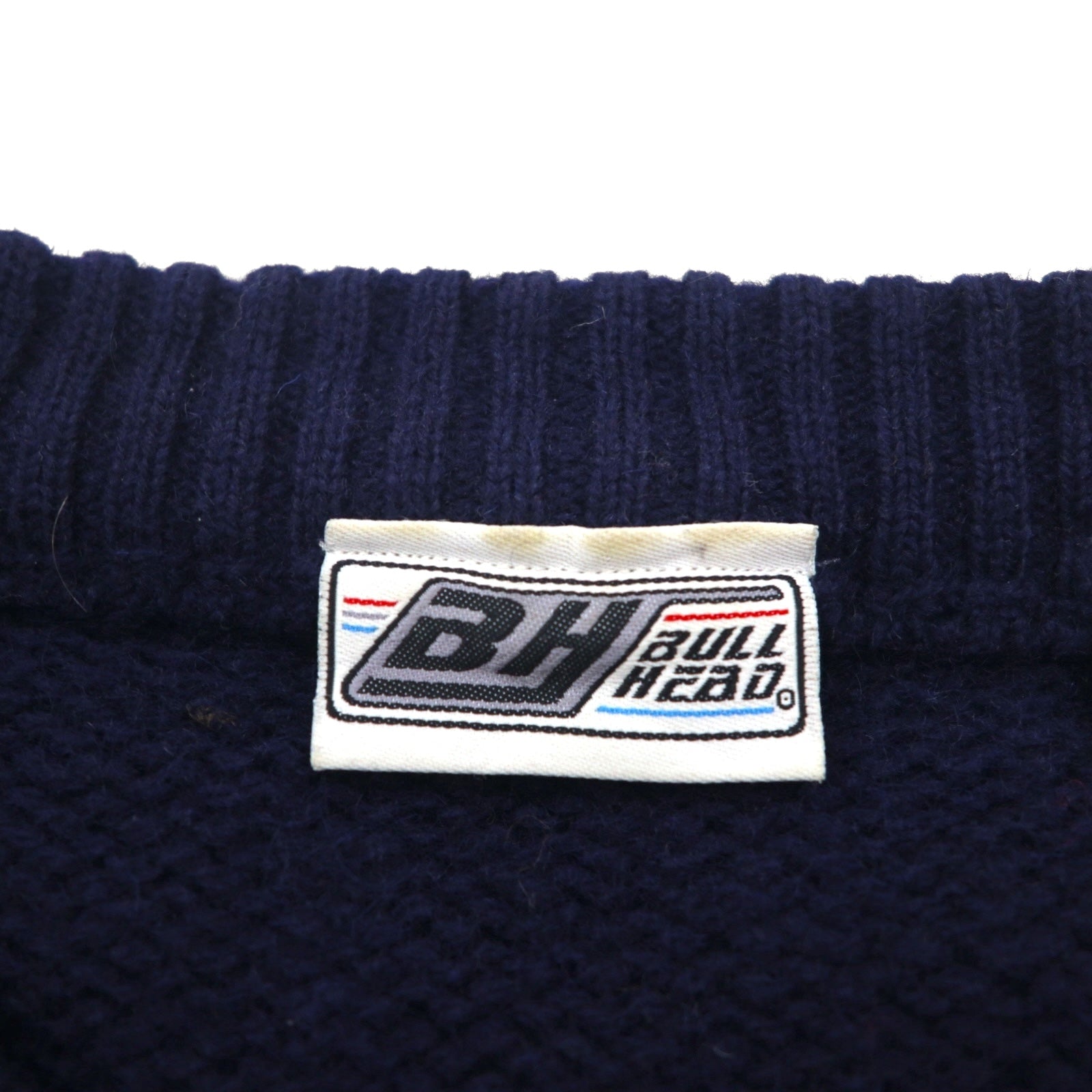 90s Vintage Shetland Wool Sweater, Argyle Pattern, XL, Navy, BULL HEAD SHETLAND, Wool