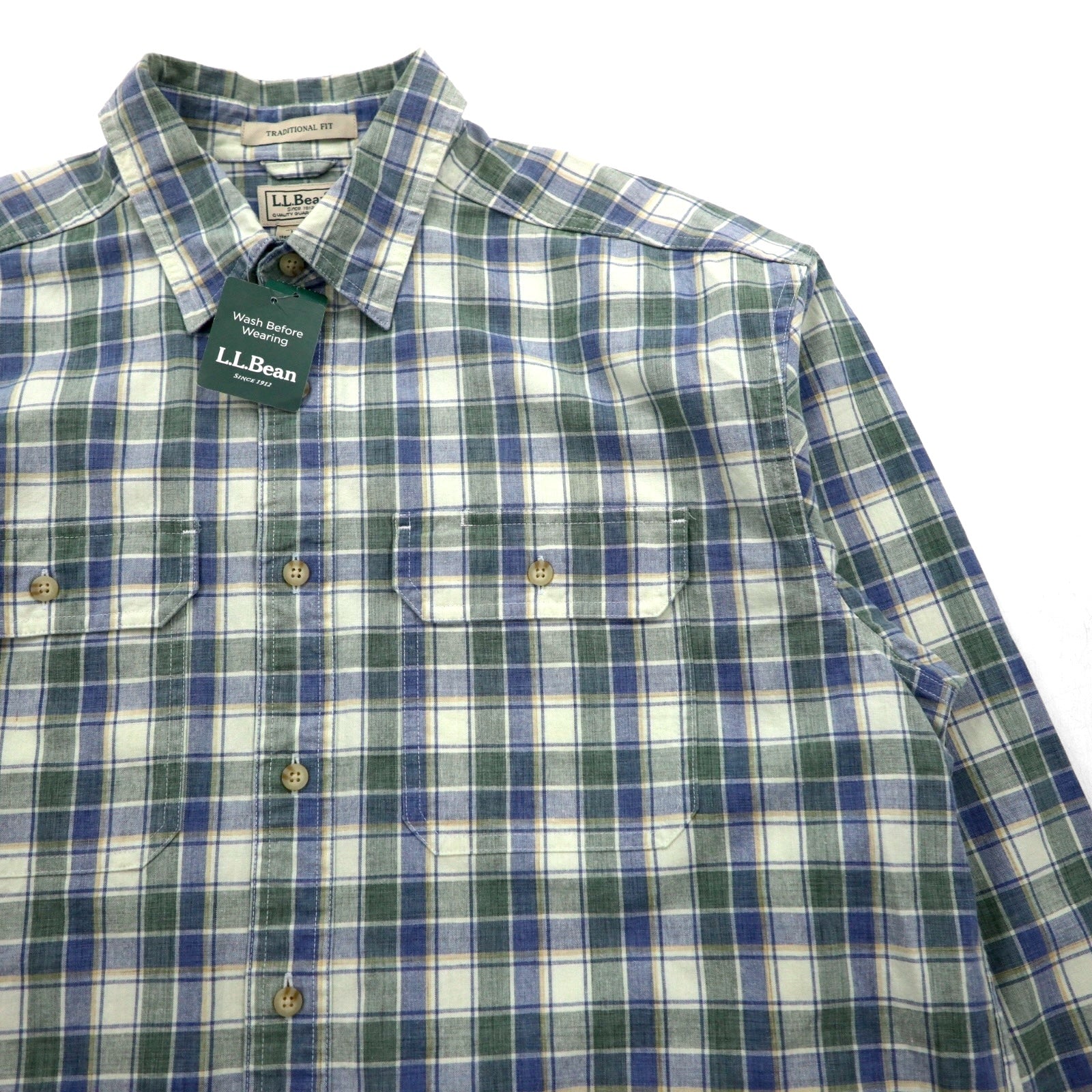 LLBean Sunwash Canvas Flannel Shirt, Size L, Check, Traditional Fit, 286410, Unused