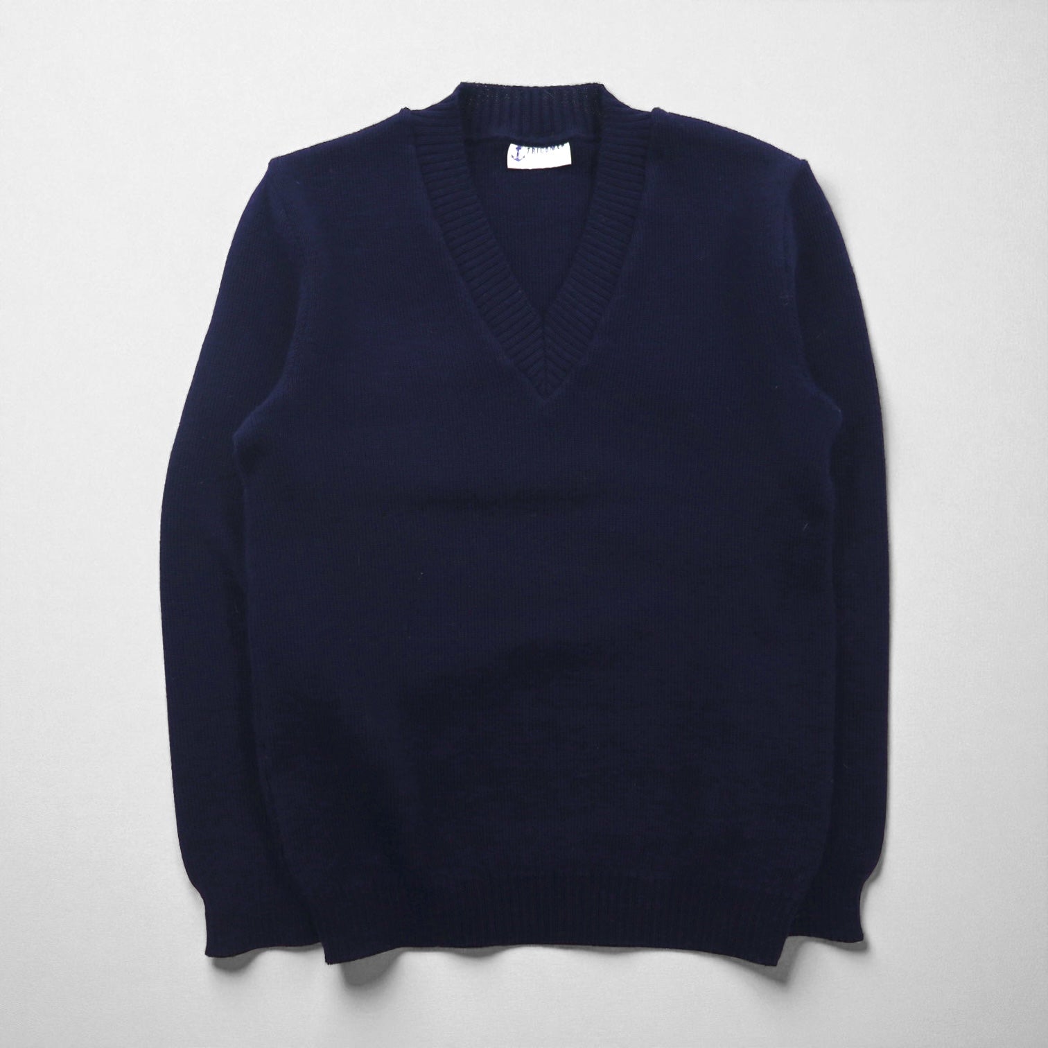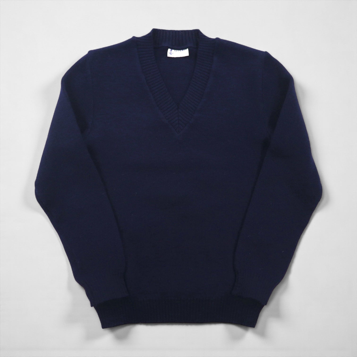 80s France Vintage TRICOMER V-Neck Knit Sweater, Made in France, Size M, Navy, Wool