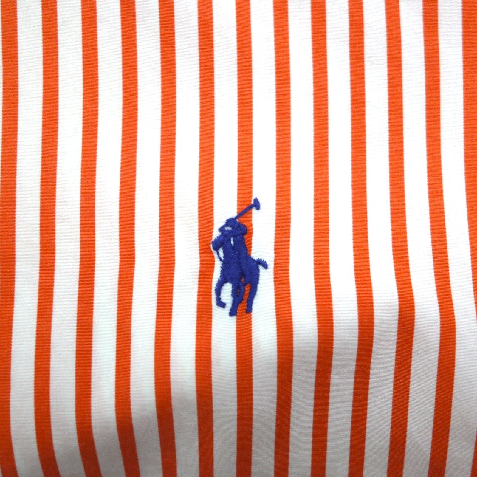 Ralph Lauren 90s Button-Down Shirt, XL, Orange Stripes with Small Pony Embroidery