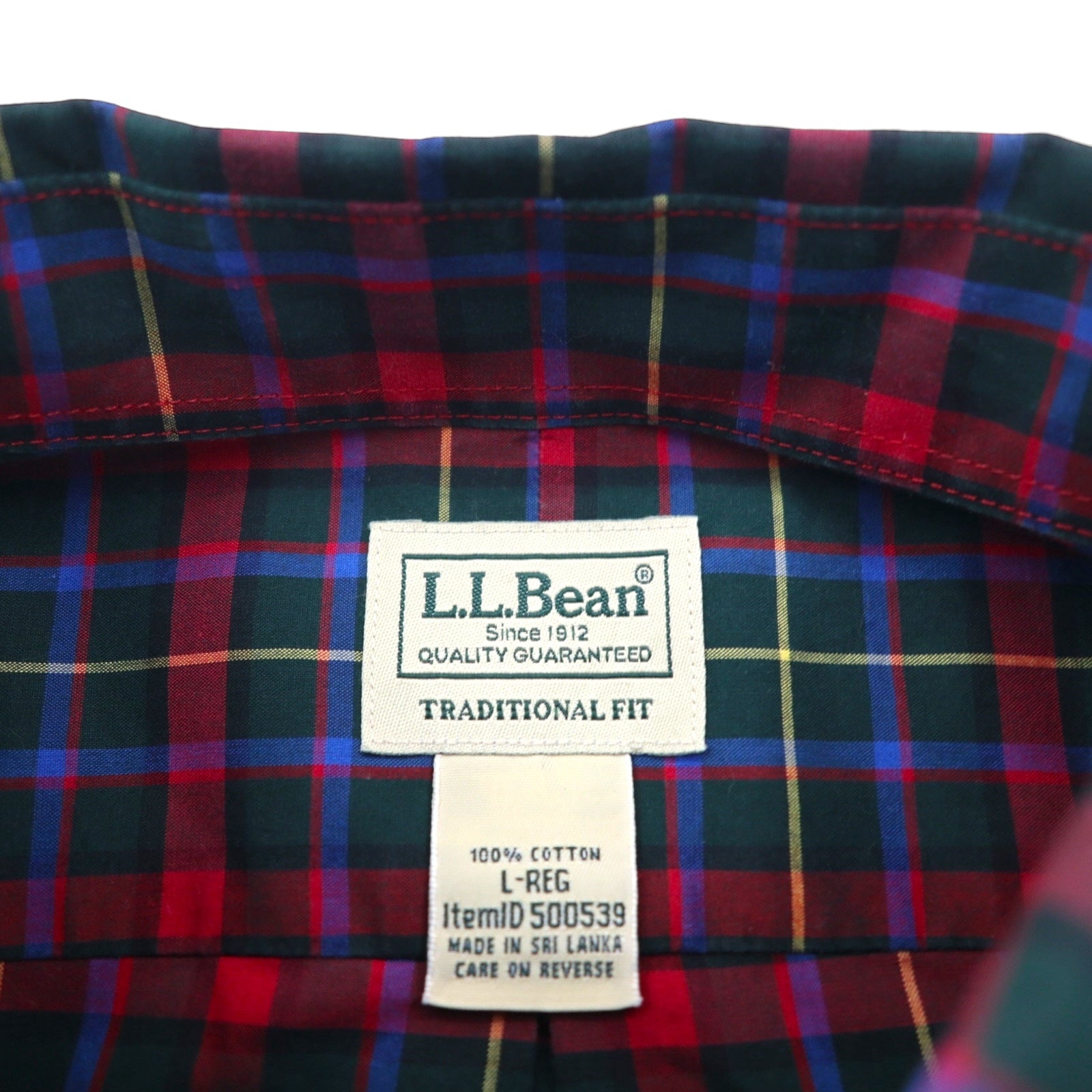 LLBean Button-Down Shirt, Large, Red, Cotton, Traditional Fit, Check, 500539
