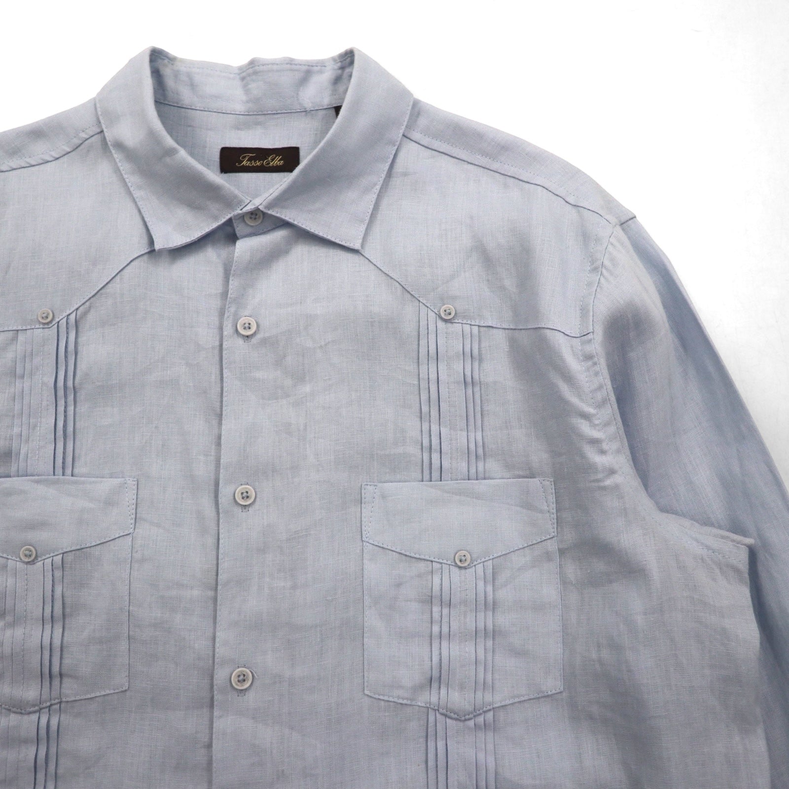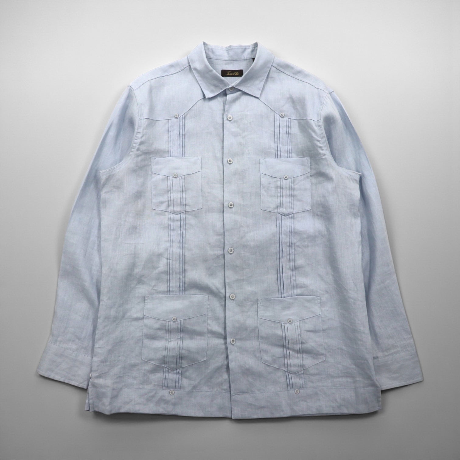 Vintage Cuban Shirt, Large, Blue, Linen, 4-Pocket, Boxy Silhouette, Tasso Elba