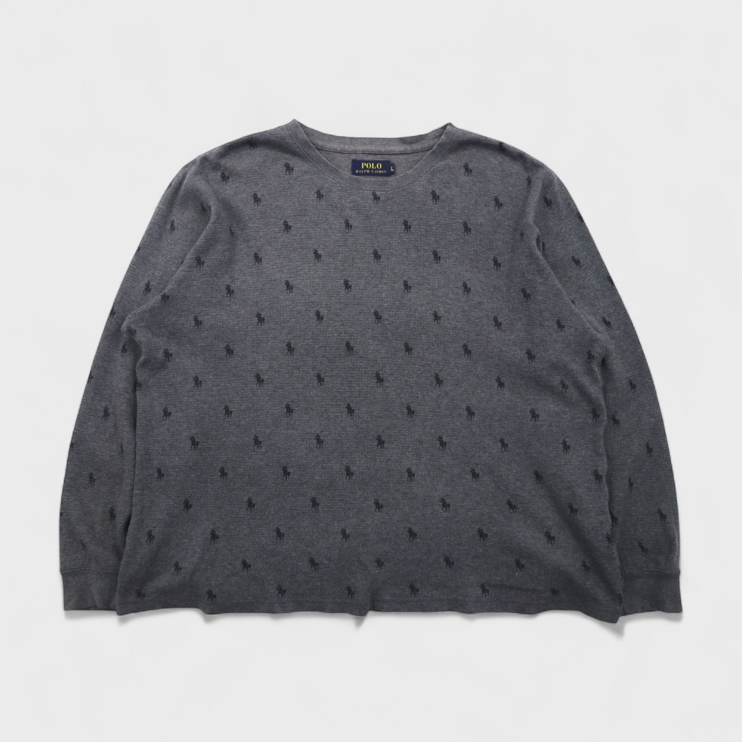 Polo Ralph Lauren Thermal Set, Size L, Gray, All-Over Pony Print, Loungewear Pajamas